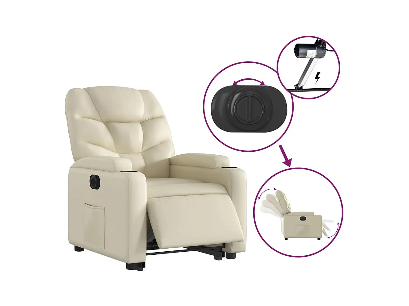 Fauteuil inclinable électrique Crème Similicuir REO13029