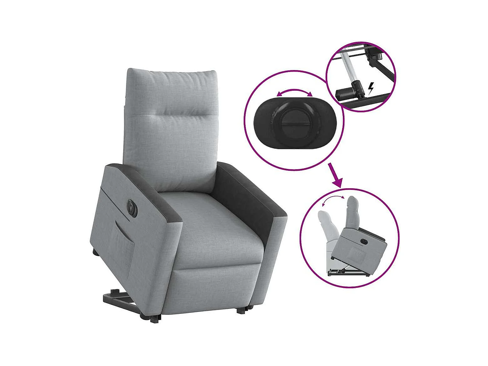 Fauteuil inclinable électrique gris clair tissu