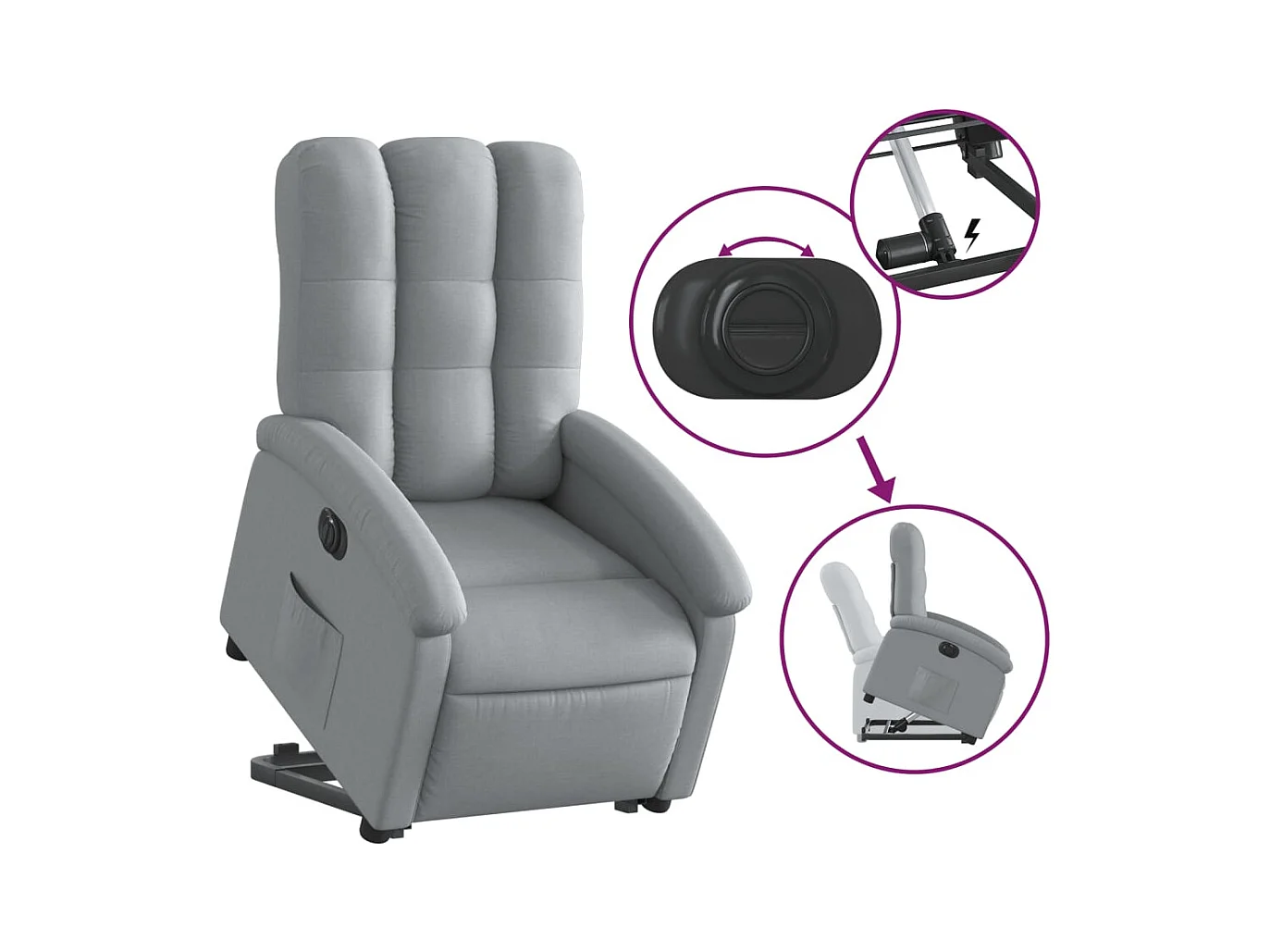 Fauteuil inclinable électrique Gris clair Tissu REO52162