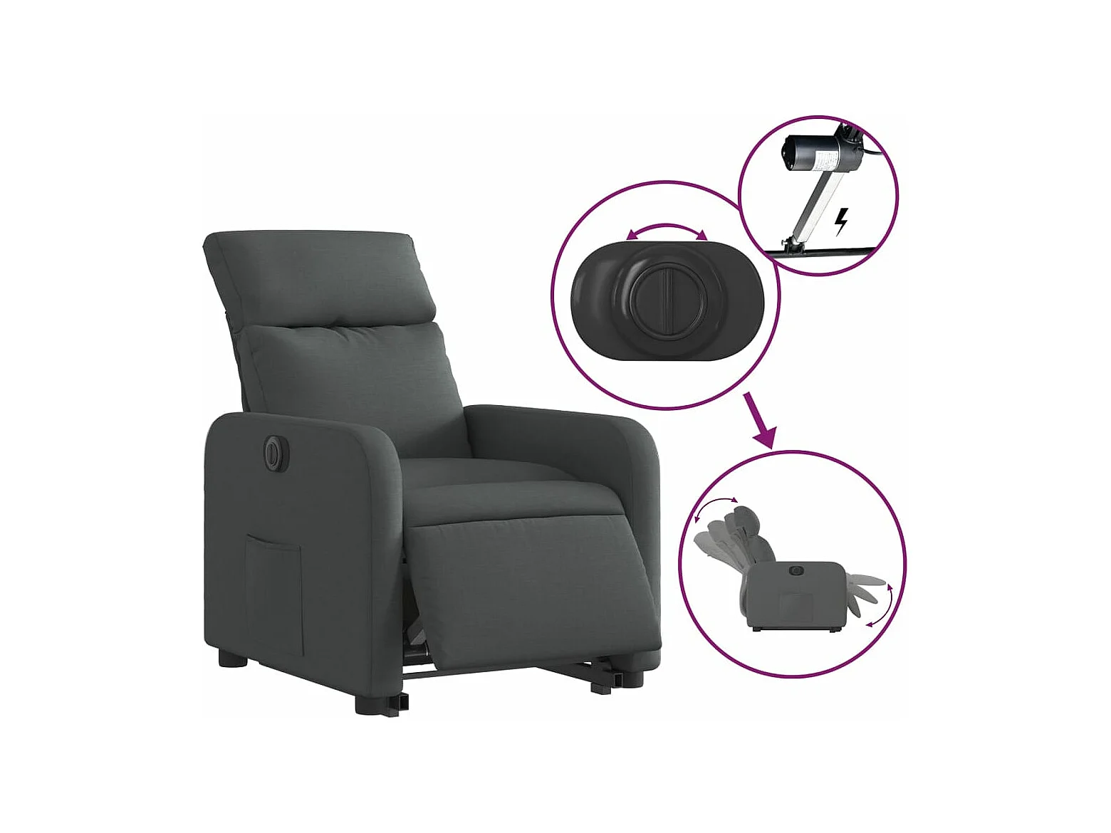 Fauteuil inclinable électrique gris foncé tissu