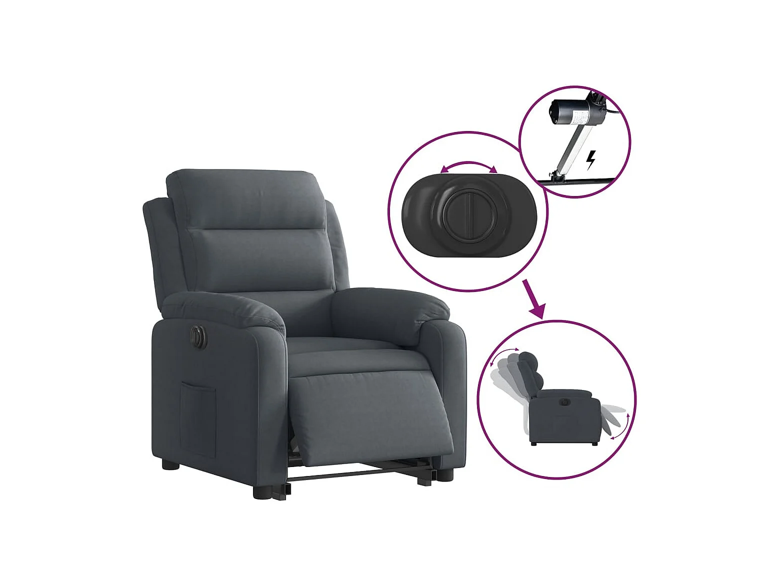 Fauteuil inclinable électrique Gris foncé Velours REO21767