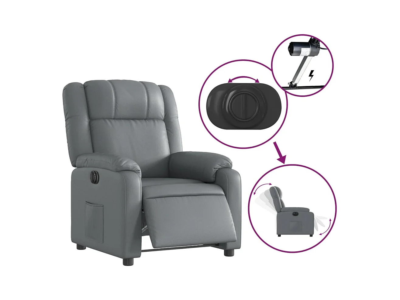 Fauteuil inclinable électrique Gris Similicuir REO83122