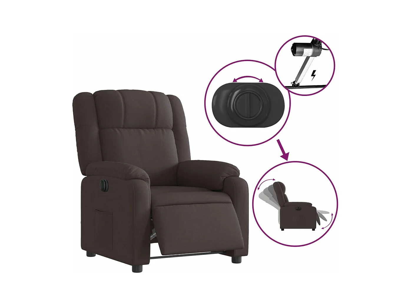 Fauteuil inclinable électrique Marron foncé Tissu