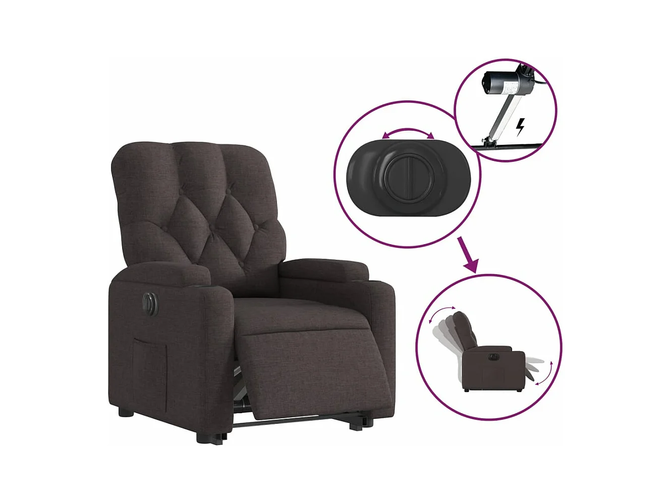 Fauteuil inclinable électrique Marron foncé Tissu REO59473