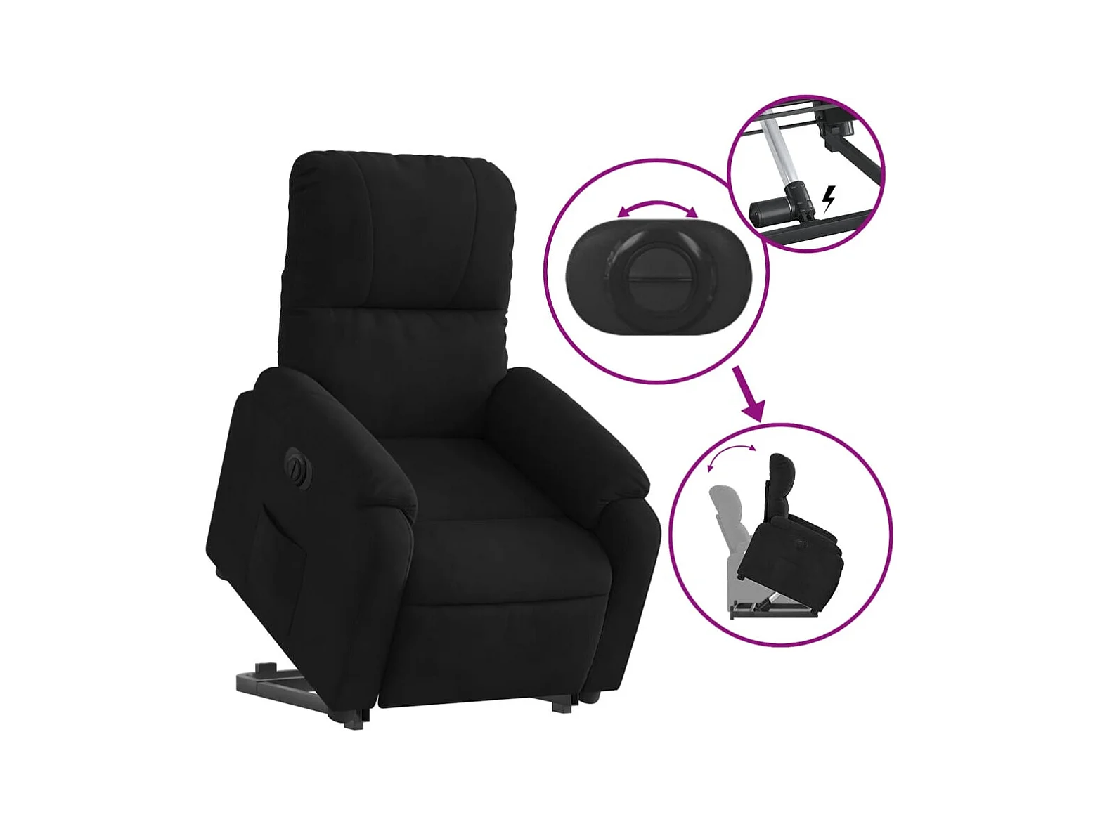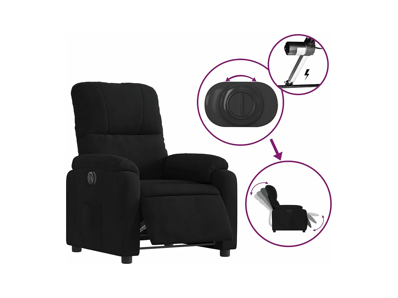 Fauteuil inclinable électrique noir tissu microfibre