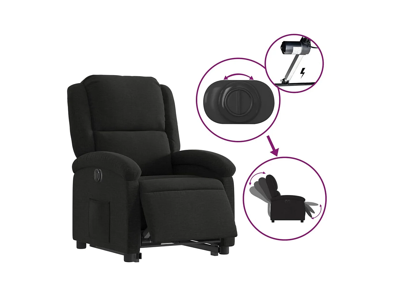 Fauteuil inclinable électrique Noir Tissu REO23336