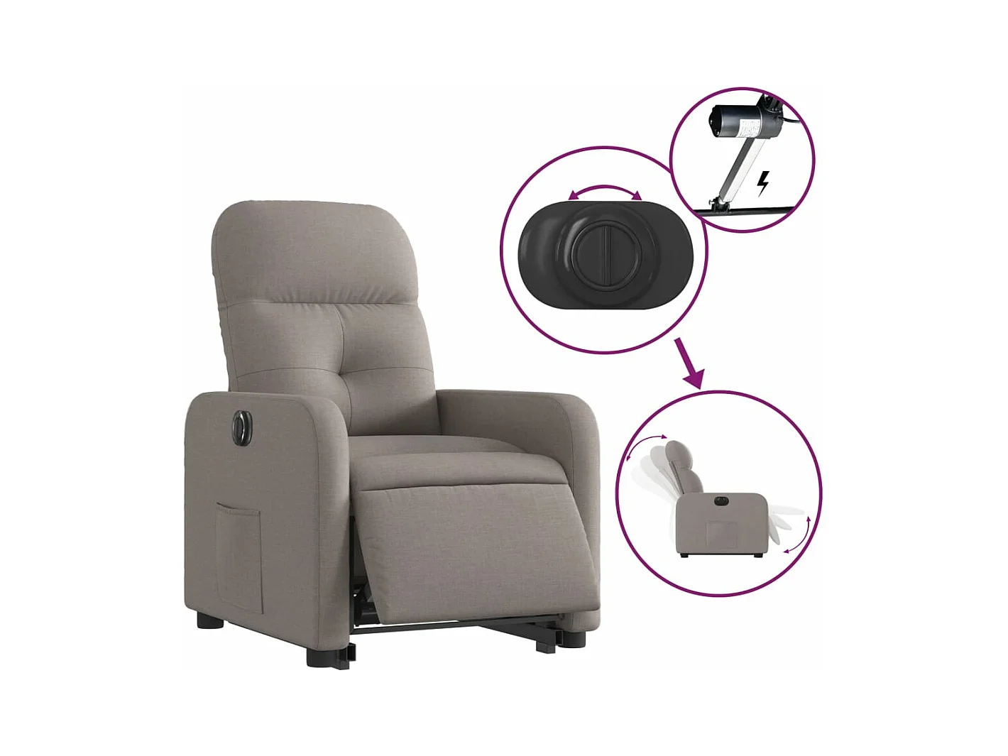 Fauteuil inclinable électrique taupe tissu REO65686