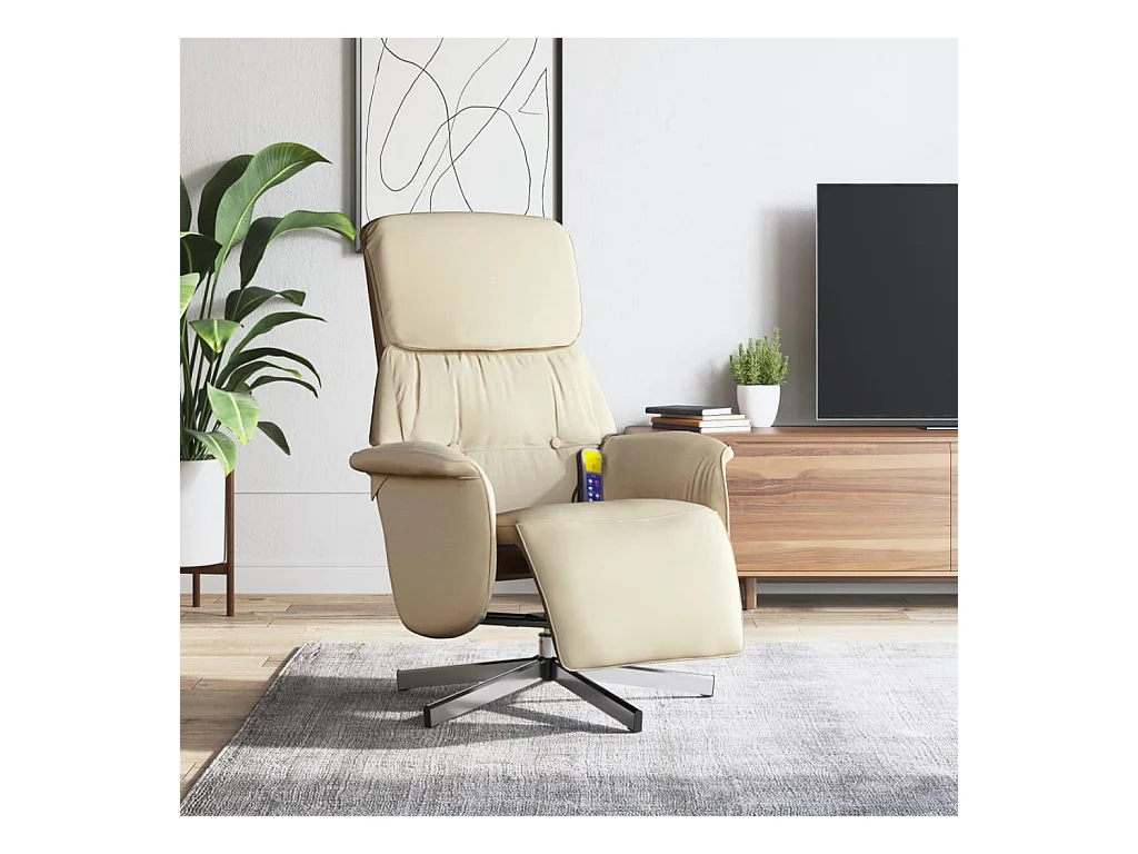 Fauteuil inclinable massant avec repose-pieds crème tissu