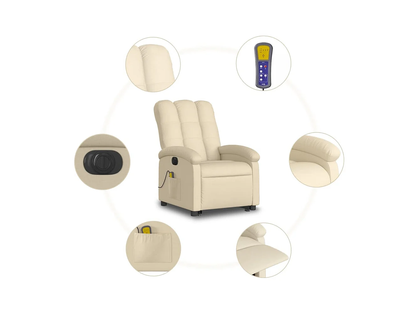 Fauteuil inclinable massant électrique crème tissu