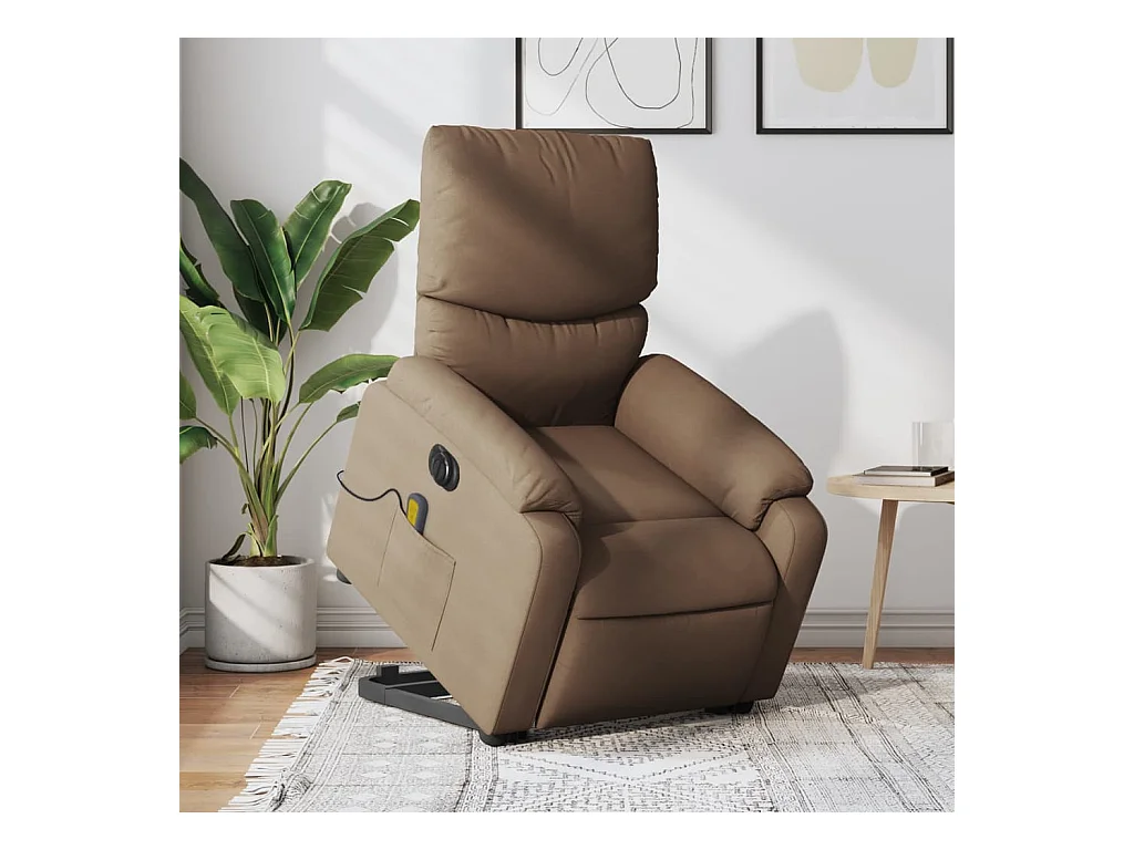 Fauteuil massant inclinable électrique Marron foncé Tissu
