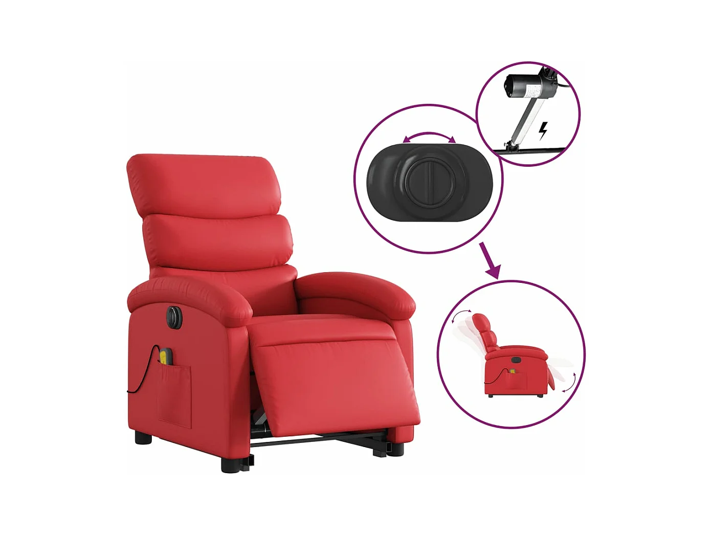 Fauteuil inclinable massant électrique rouge similicuir