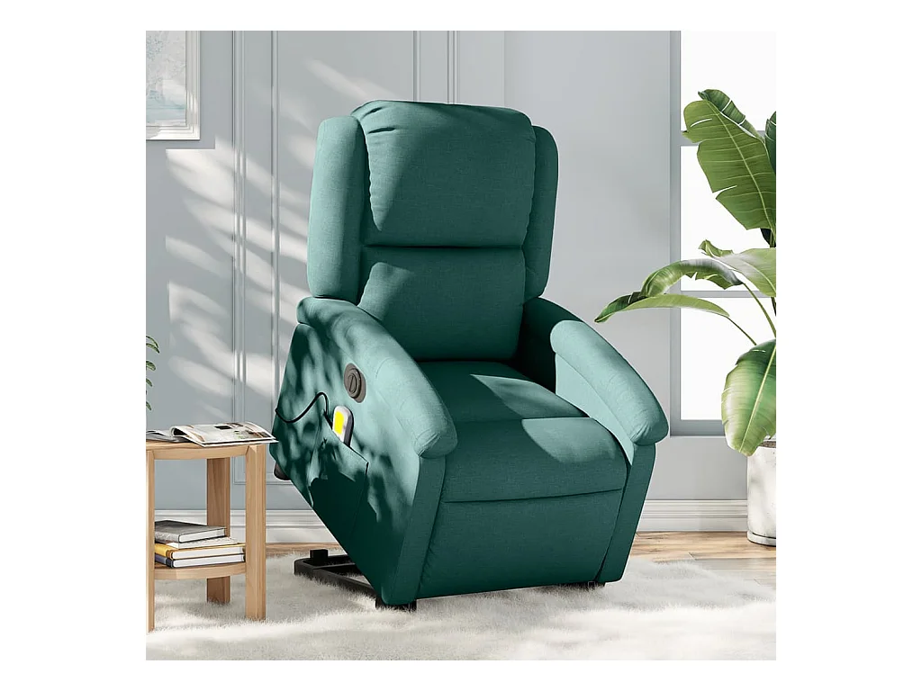 Fauteuil massant inclinable électrique Vert foncé Tissu