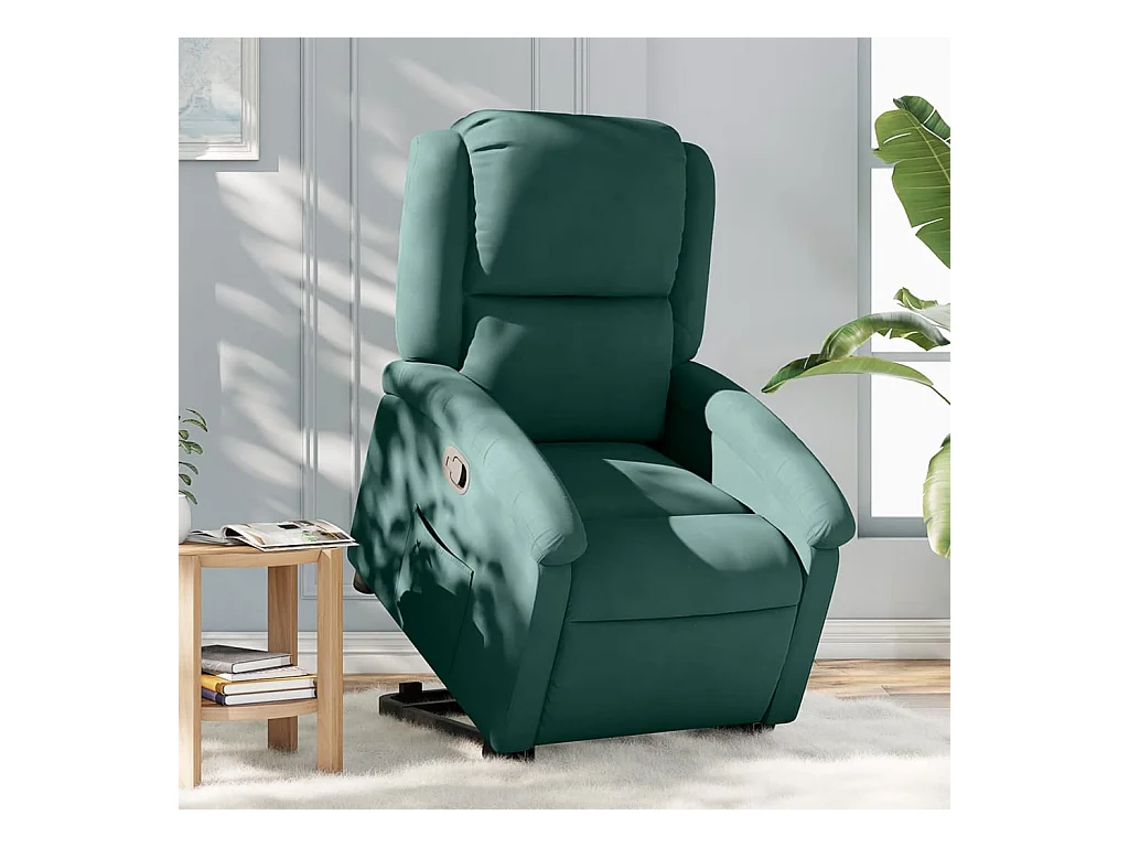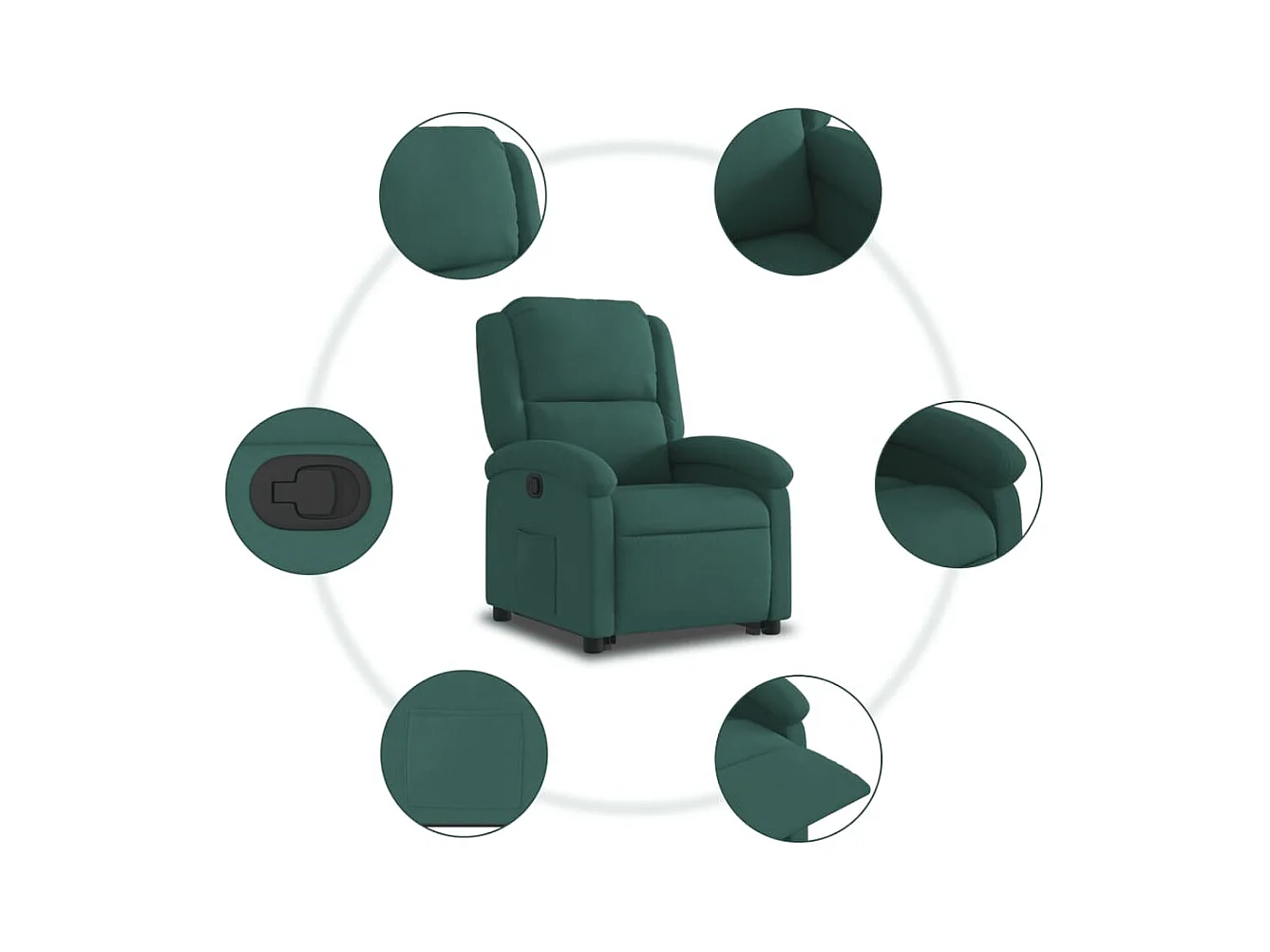 Chaise longue en velours, fauteuil relax avec accoudoirs et coussin lombaire cylindrique pour salon, appartement, petit espace - Vert
