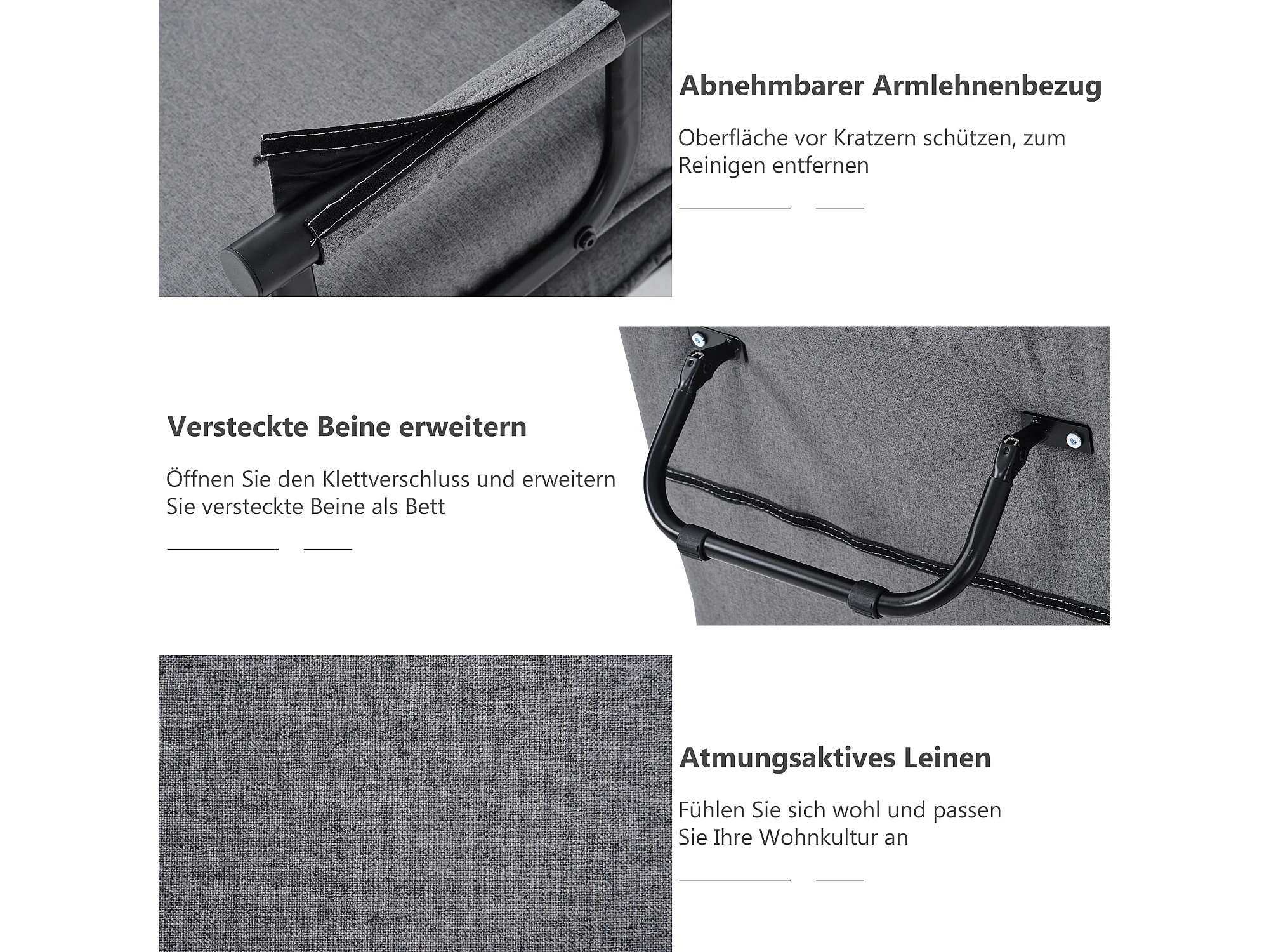 Fauteuil-lit convertible avec dossier réglable 6 positions, coussin inclus et assise rembourrée, idéal pour maison ou bureau