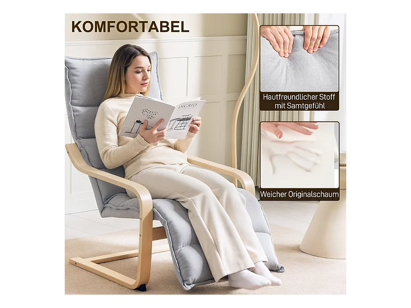 Fauteuil à bascule, avec accoudoirs, , dossier incliné, pieds en bois massif, -Gris clair