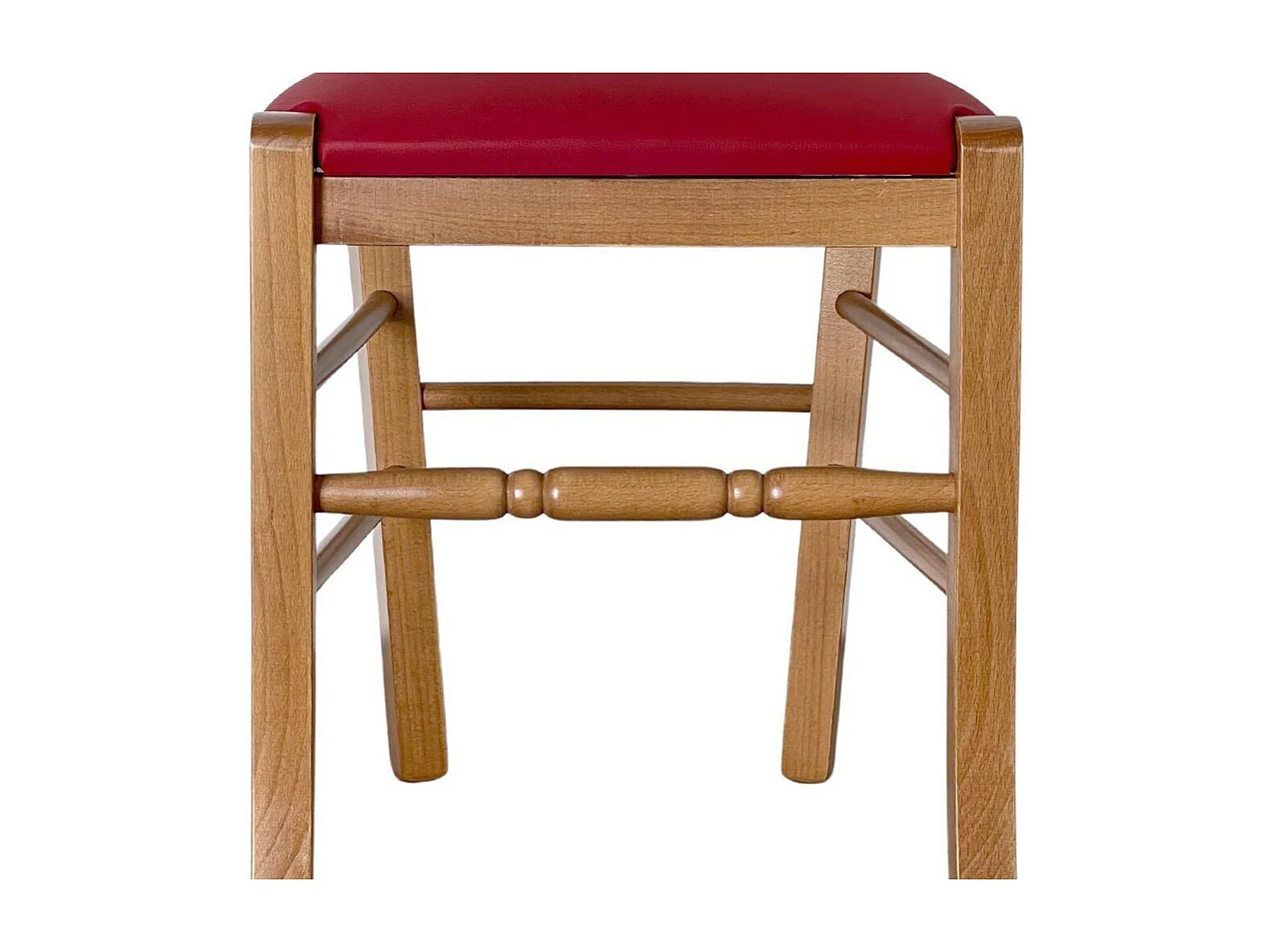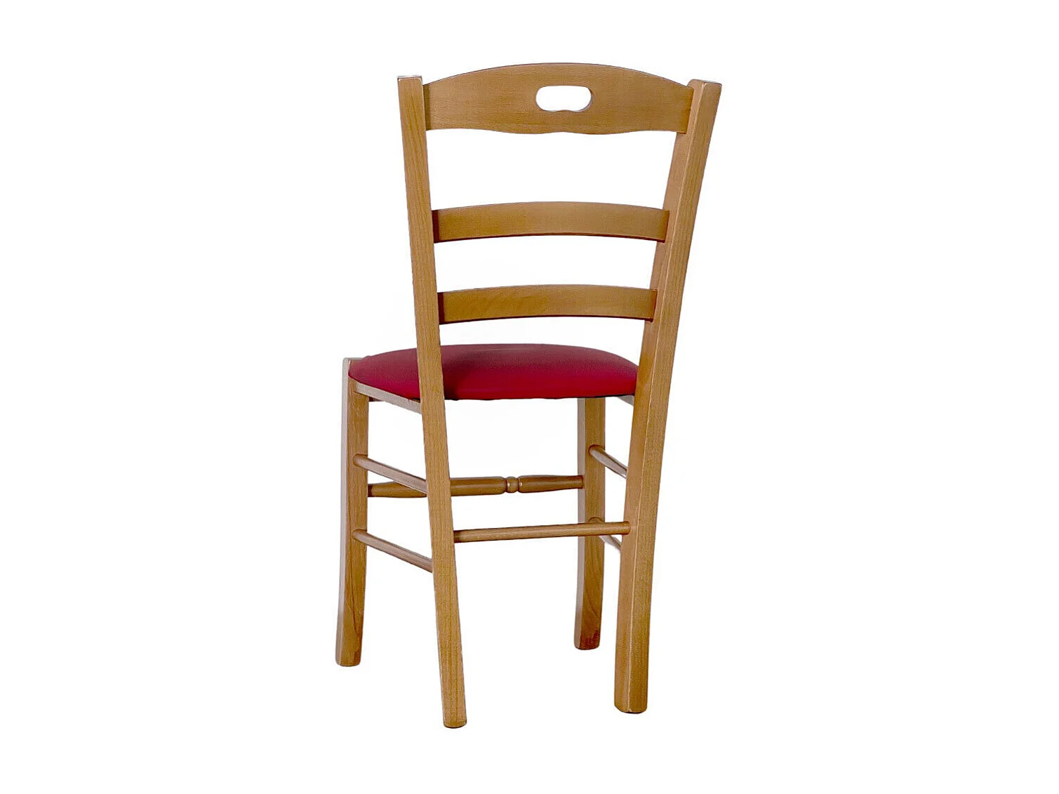 Fauteuil Loris en noyer clair avec assise en similicuir rouge