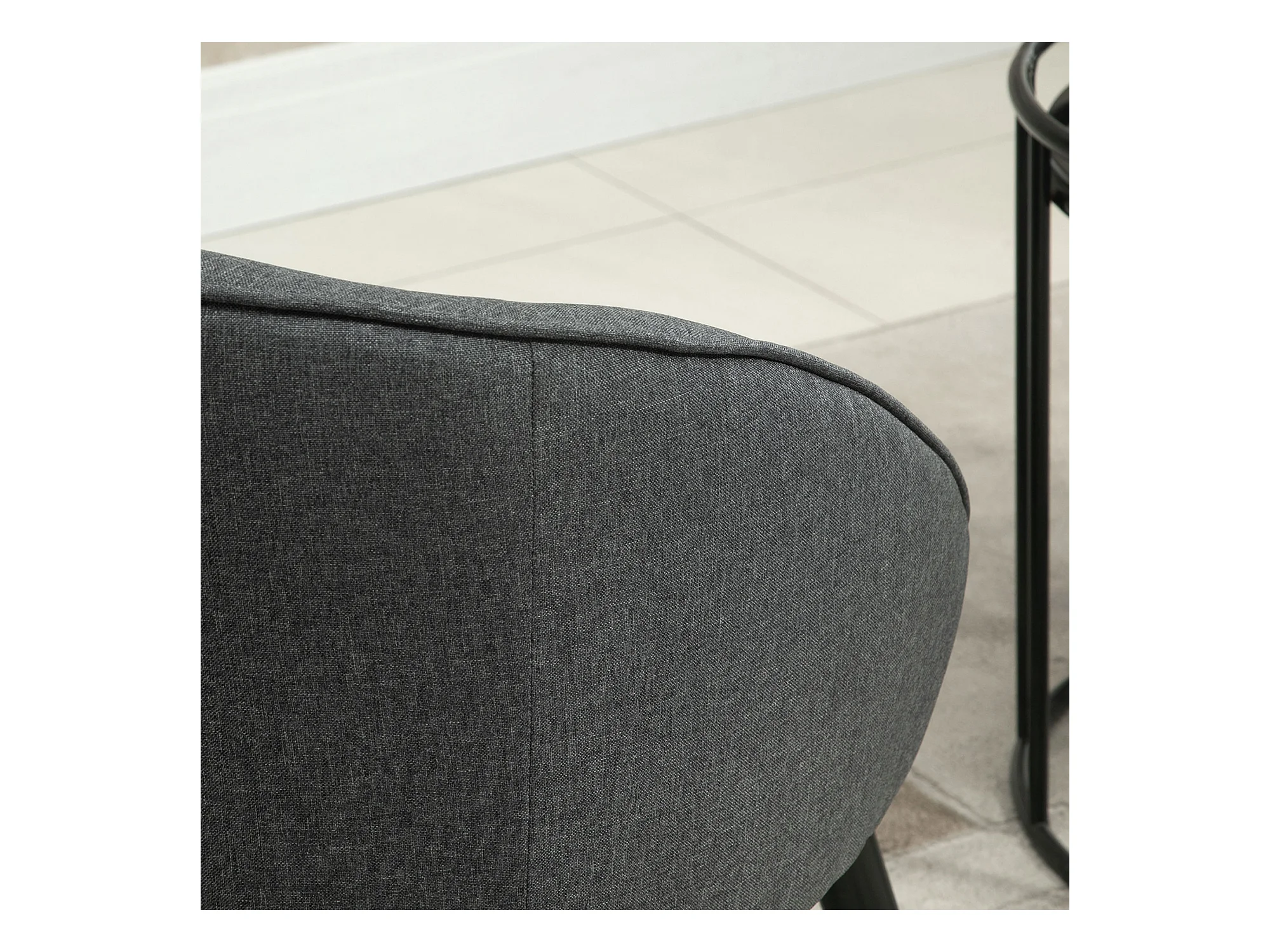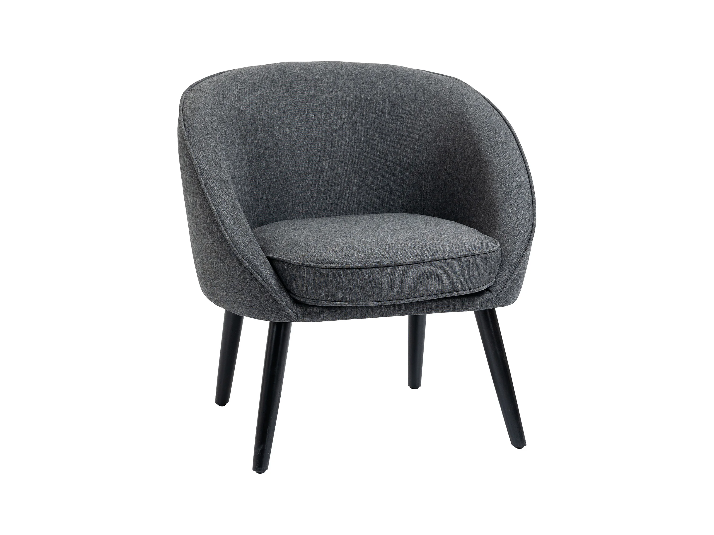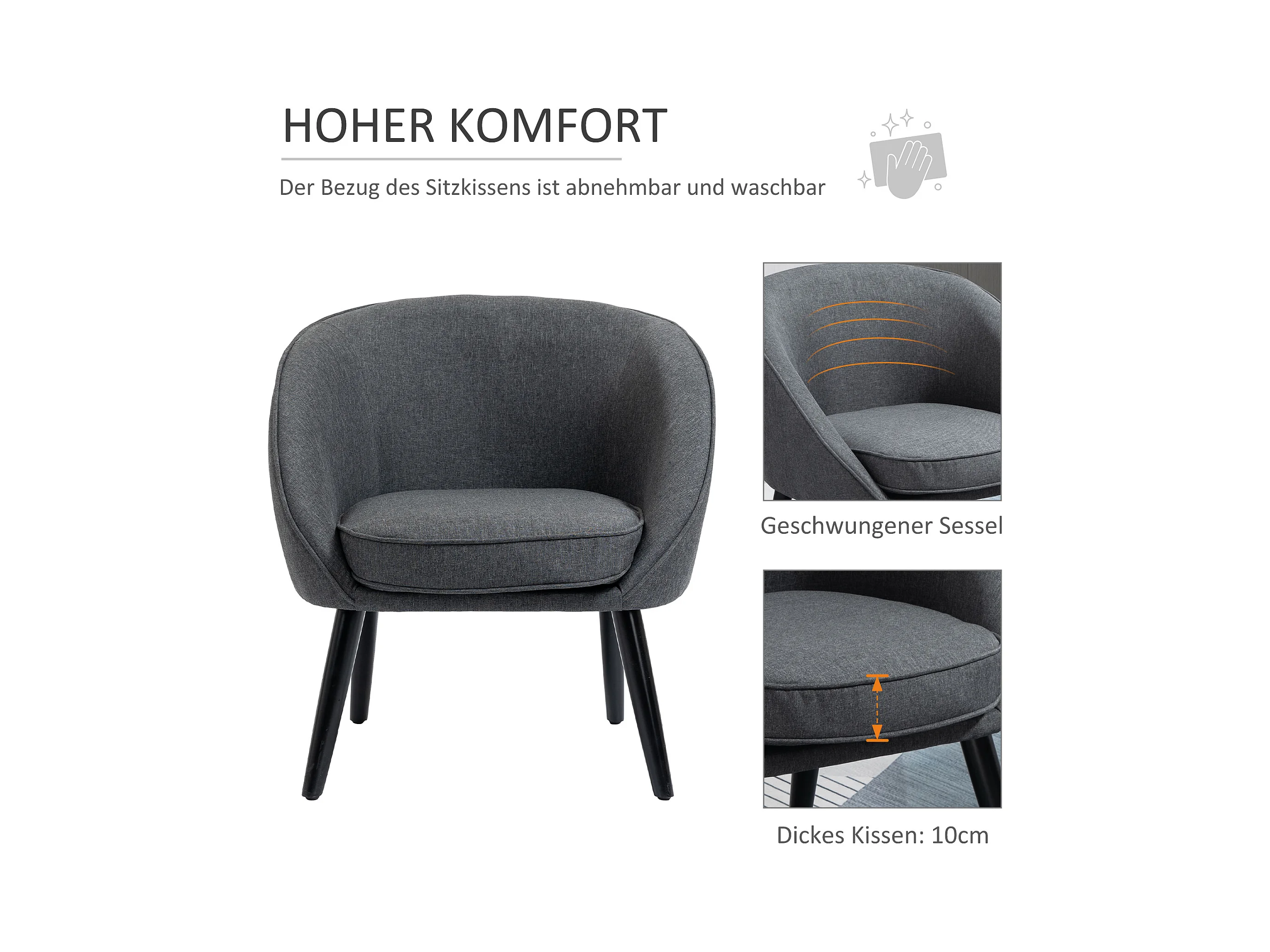 Fauteuil lounge avec accoudoirs, tissu lin, pieds en bois, gris (71x65x75 cm)