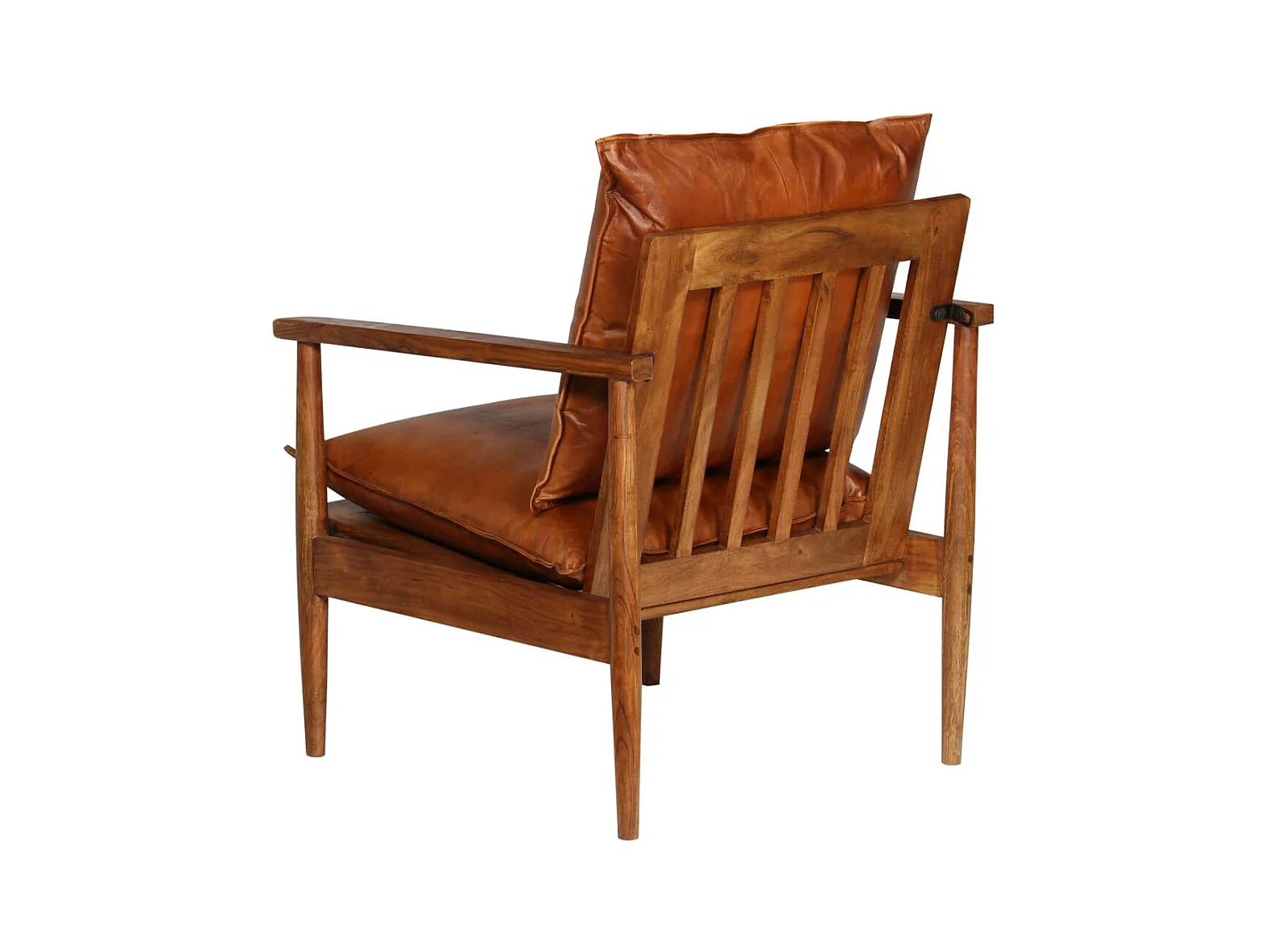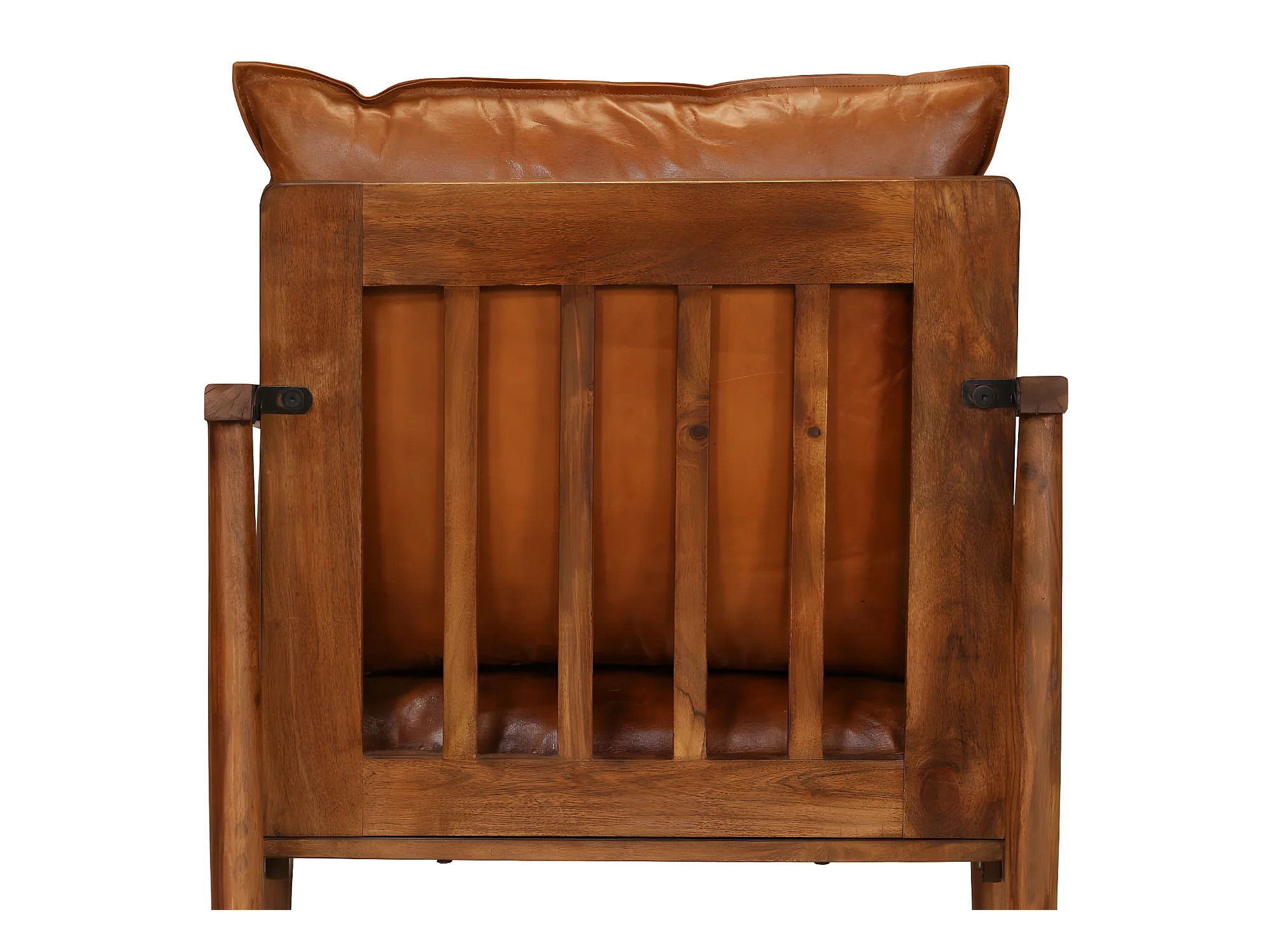 Fauteuil Marron Cuir véritable avec bois d'acacia