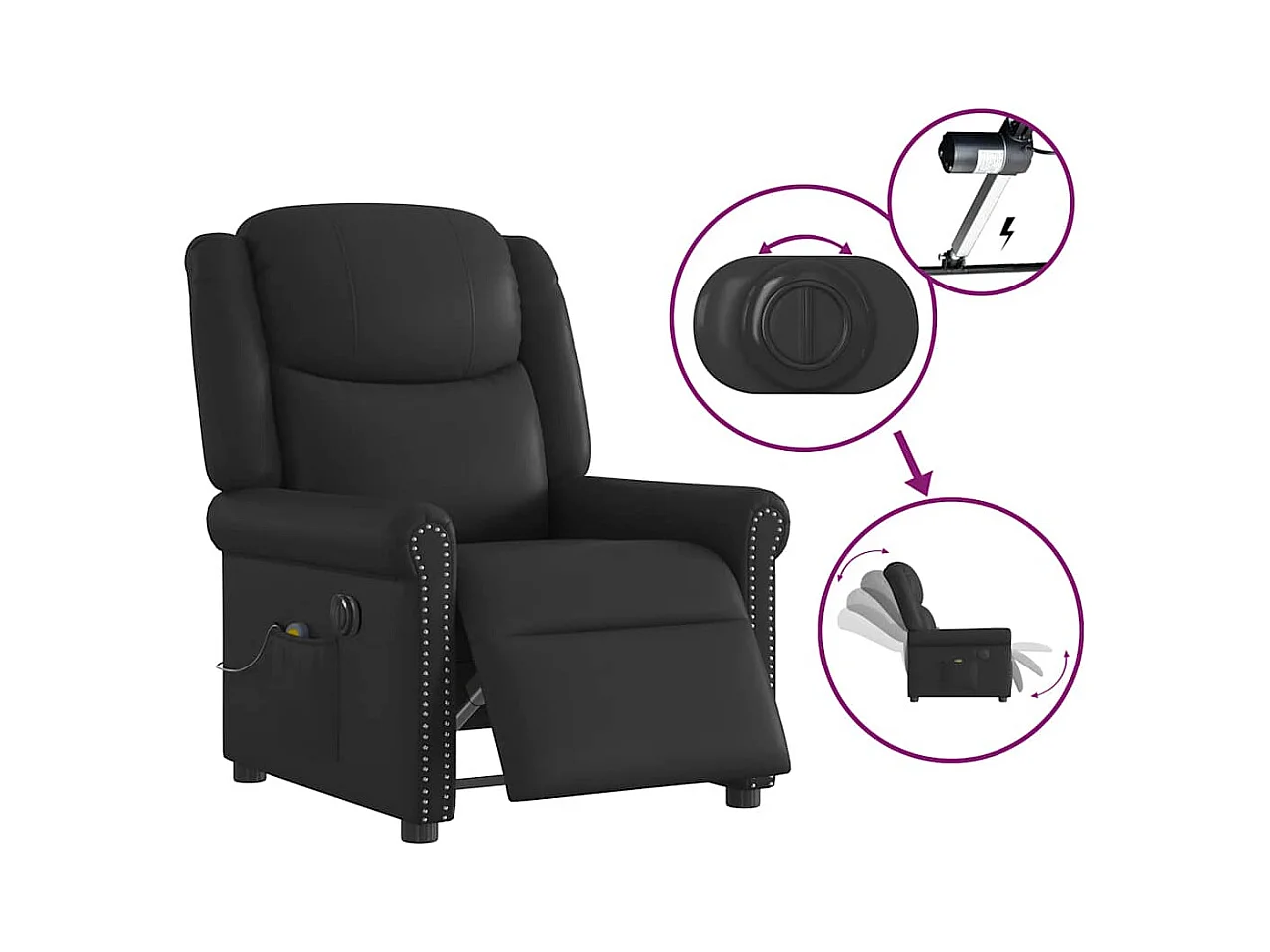 Fauteuil inclinable massage électrique noir brillant similicuir