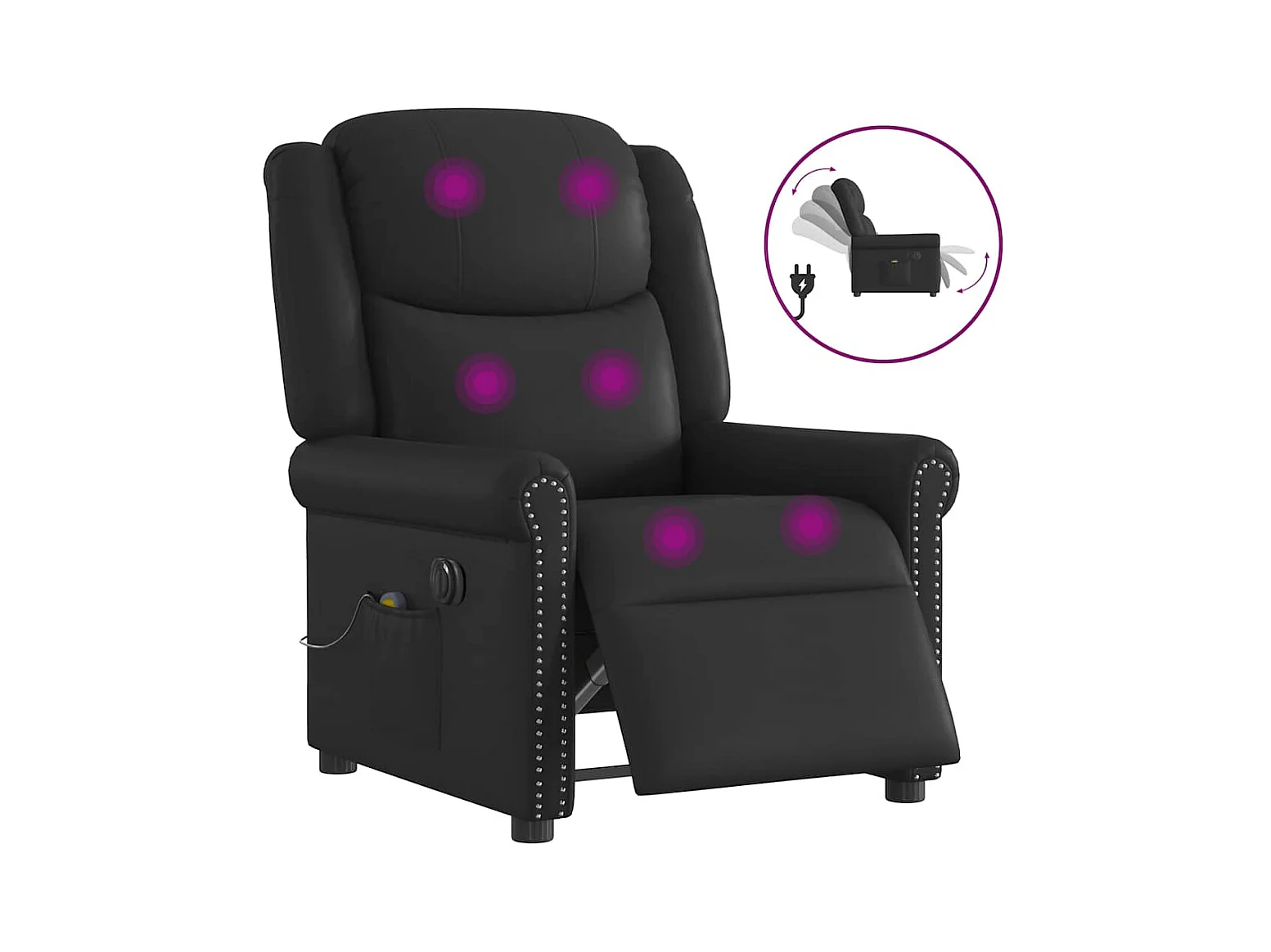 Fauteuil massage inclinable électrique noir brillant similicuir