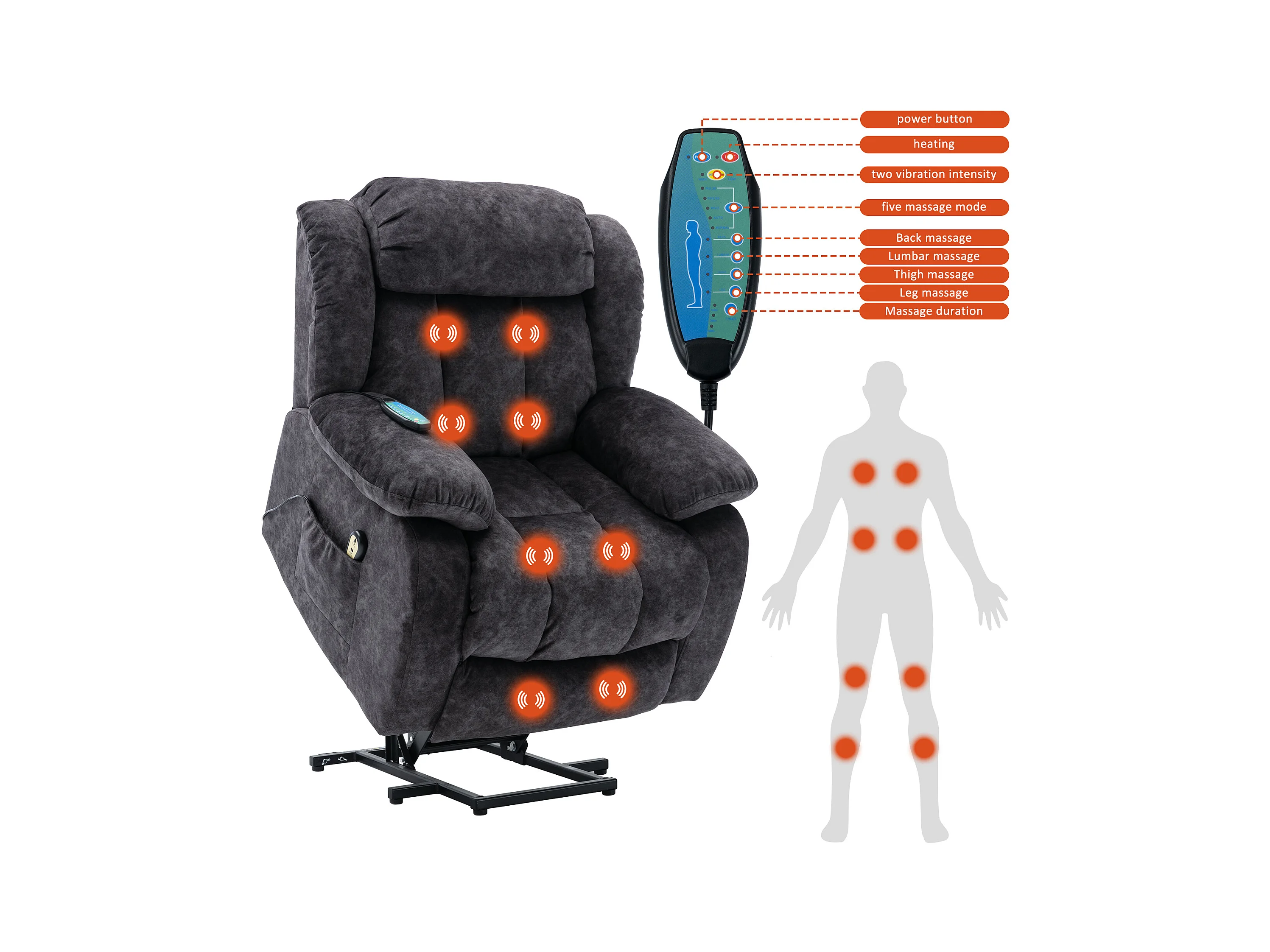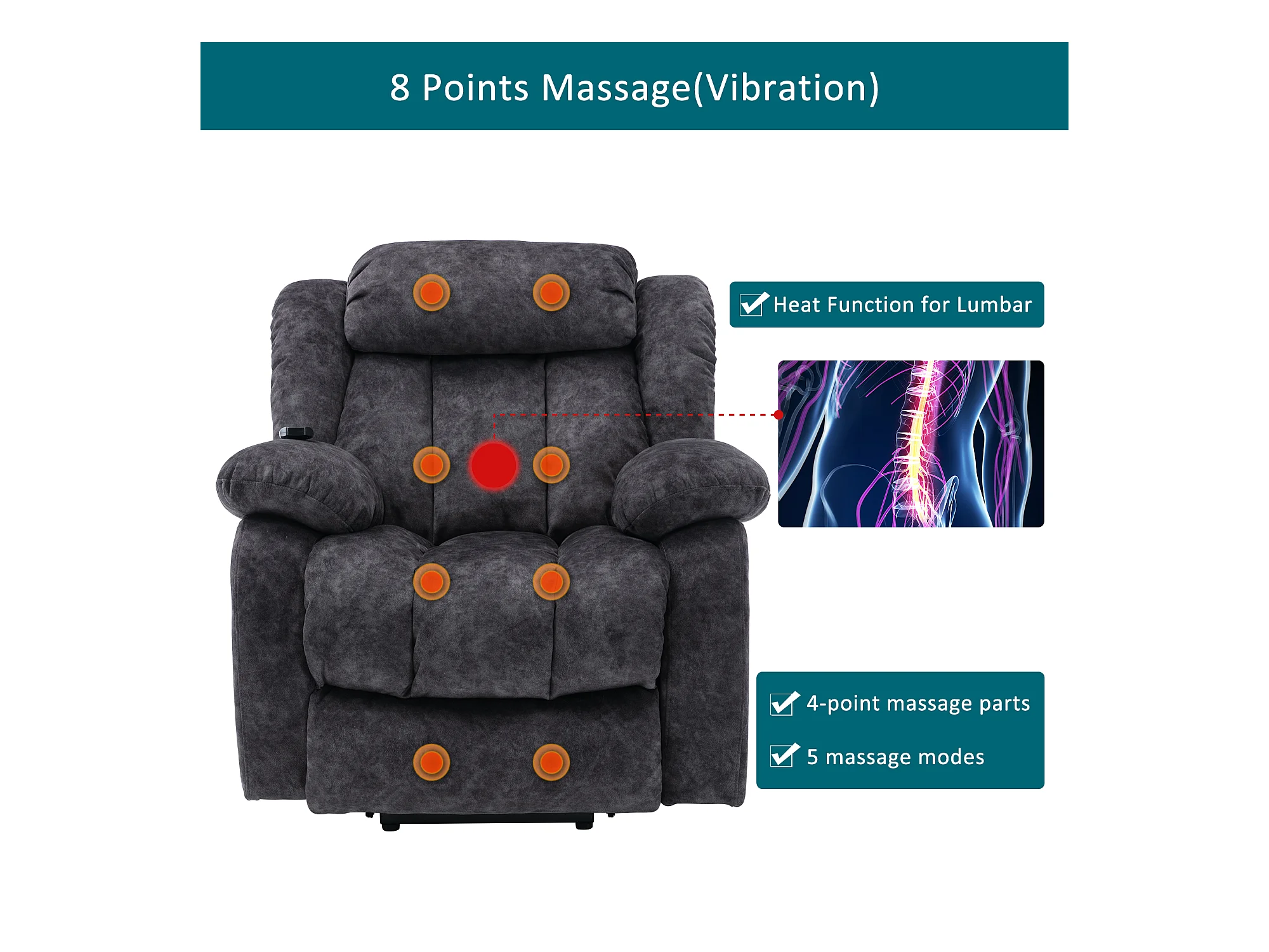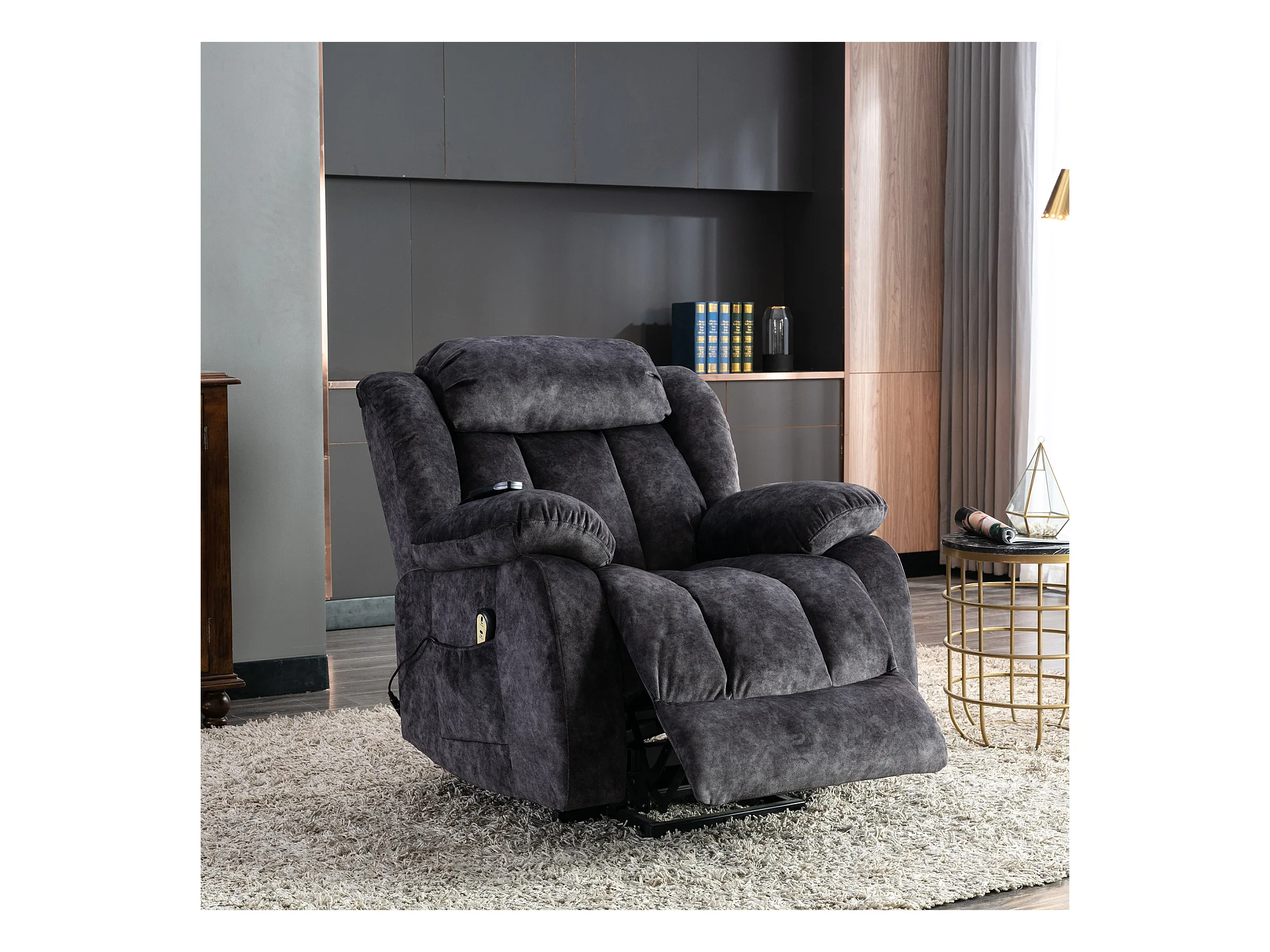 Fauteuil massant - Fauteuil électrique inclinable - Fonction chauffage et vibration - Velours - Gris