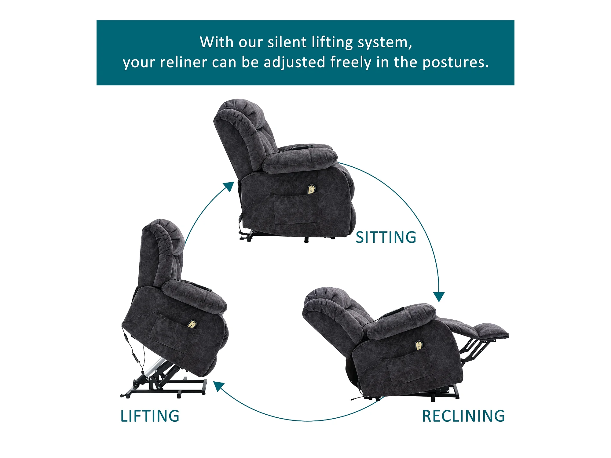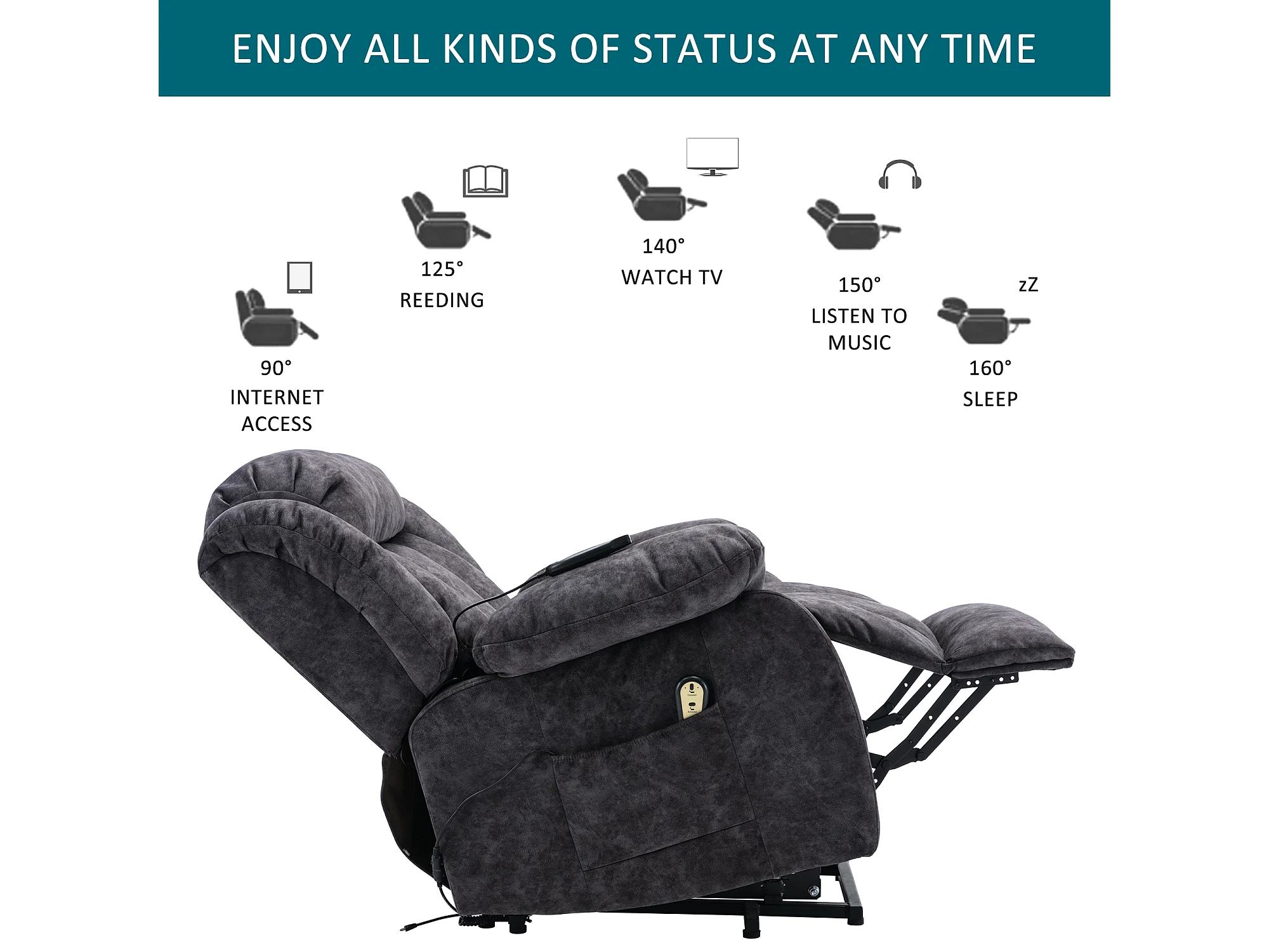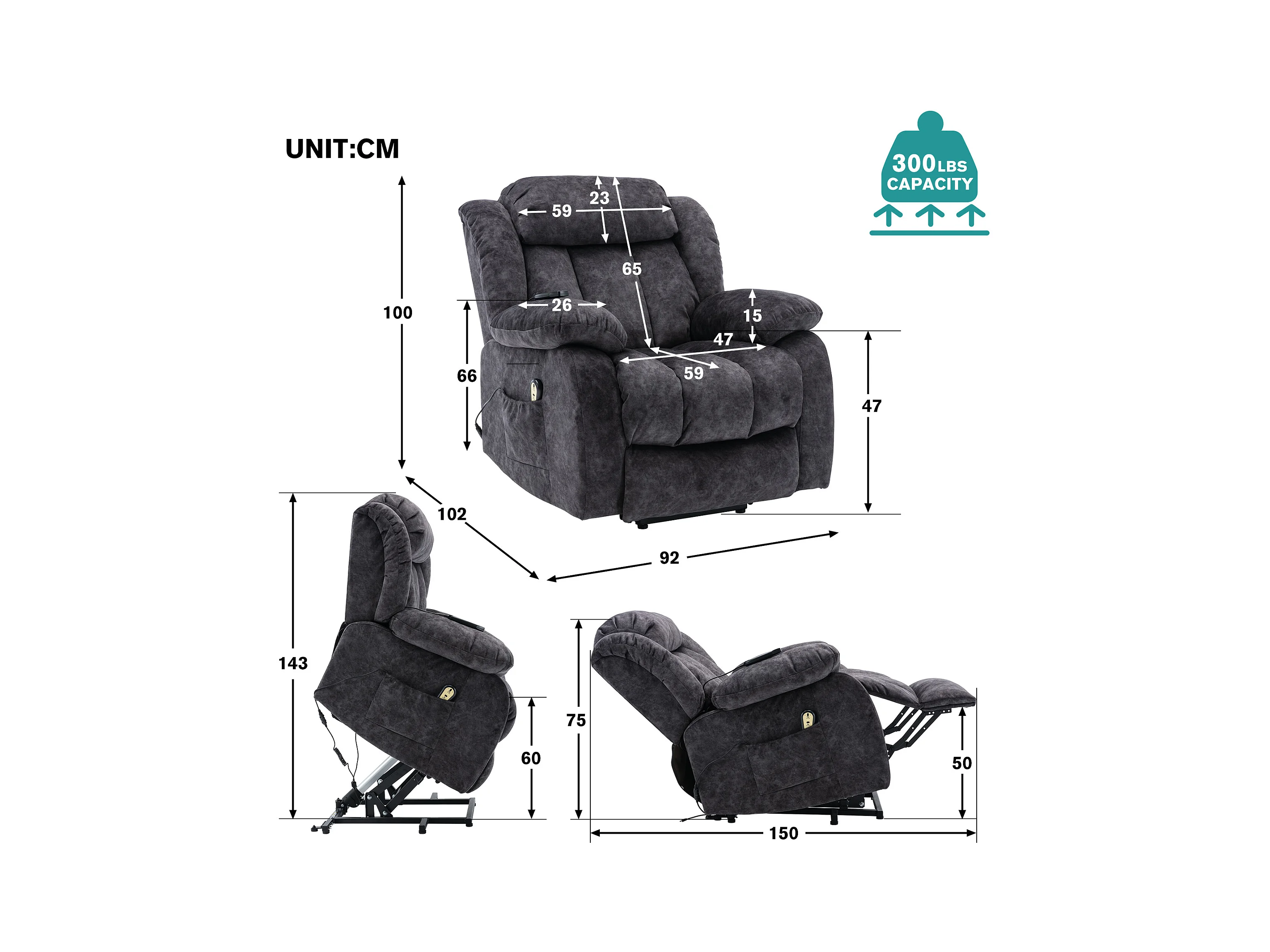 Fauteuil massant - Fauteuil électrique inclinable - Fonction chauffage et vibration - Velours - Gris