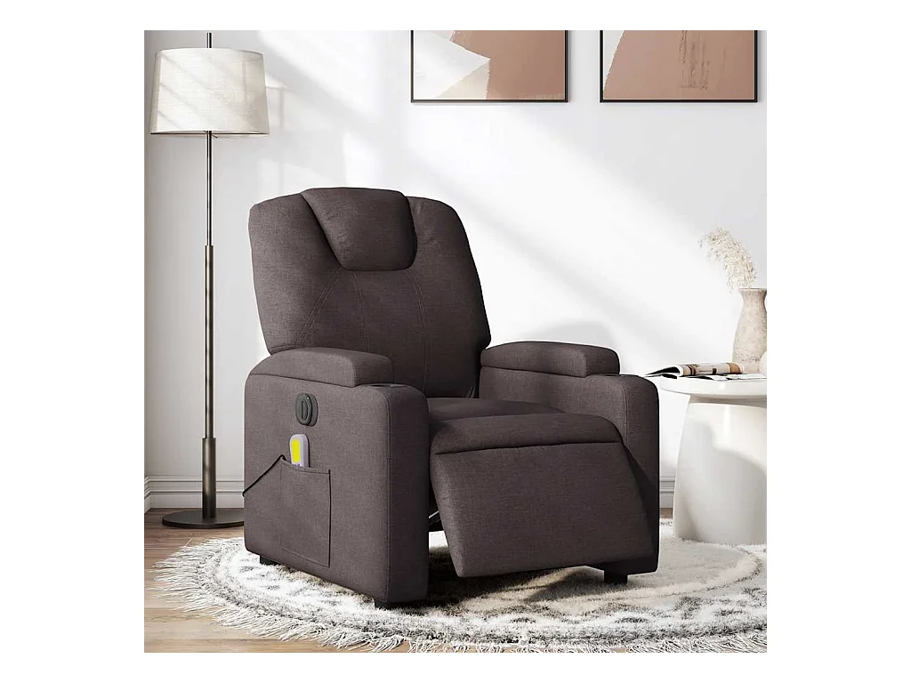 Fauteuil massant inclinable électrique Marron foncé Tissu