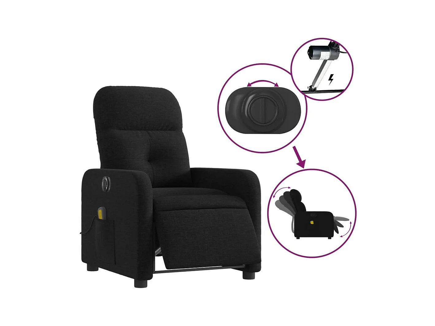 Fauteuil massant inclinable électrique Noir Tissu