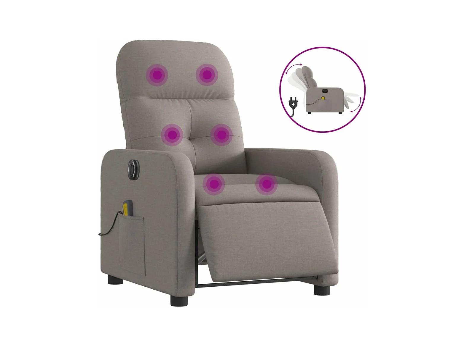Fauteuil inclinable massant électrique Taupe Tissu