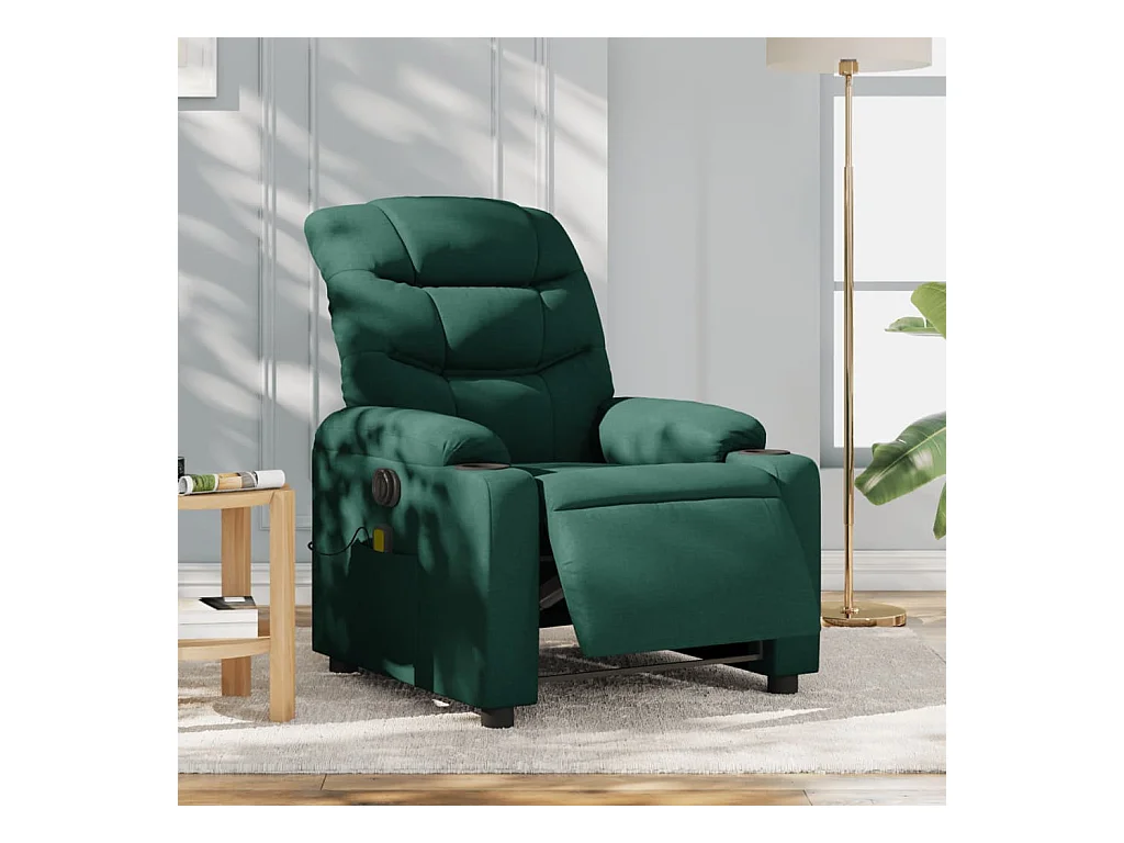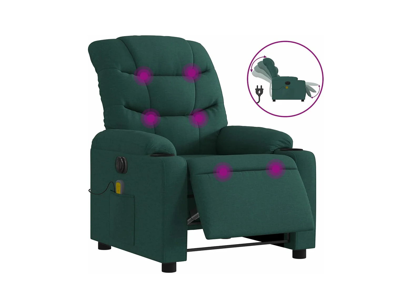 Fauteuil massant inclinable électrique Vert foncé Tissu