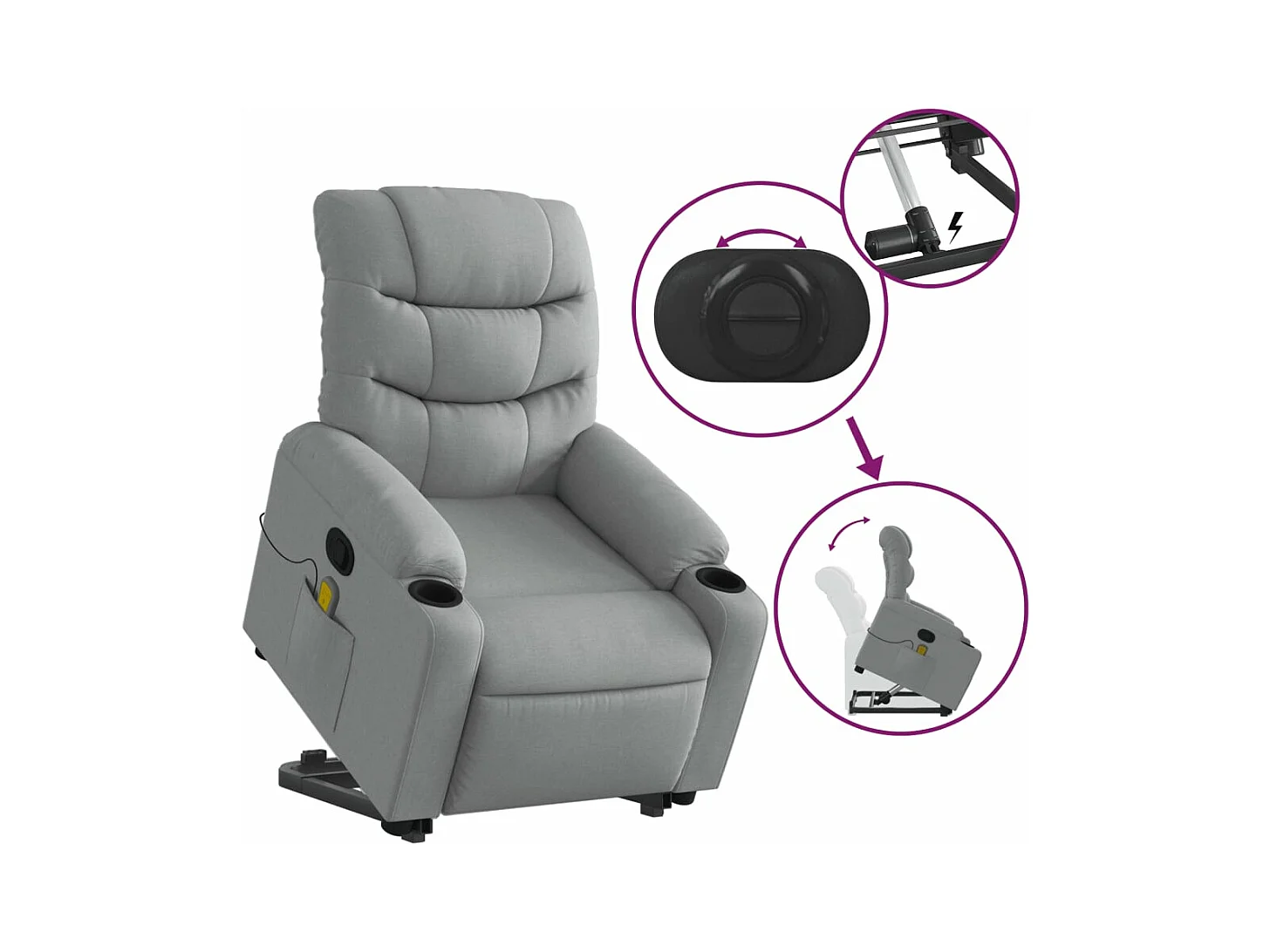 Fauteuil massant inclinable électrique gris clair tissu