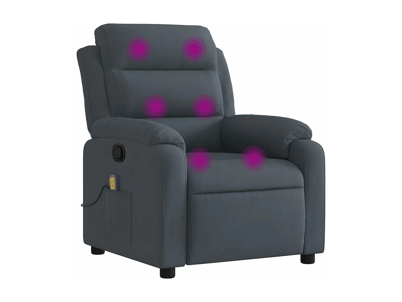 Fauteuil massant inclinable repose-pied gris foncé velours