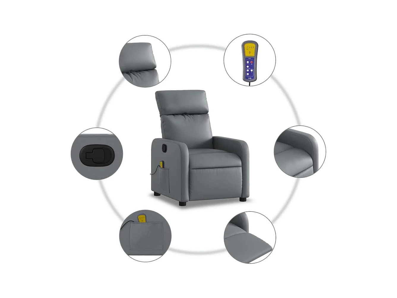 Fauteuil inclinable massant repose-pieds gris similicuir