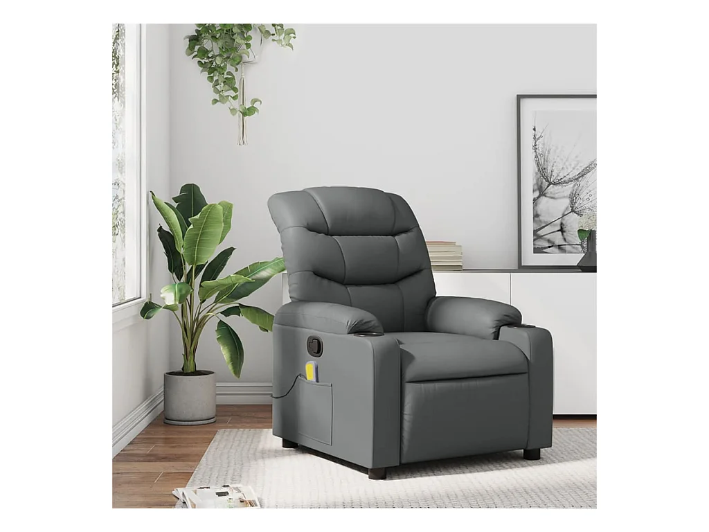Fauteuil inclinable massant avec repose-pied gris similicuir