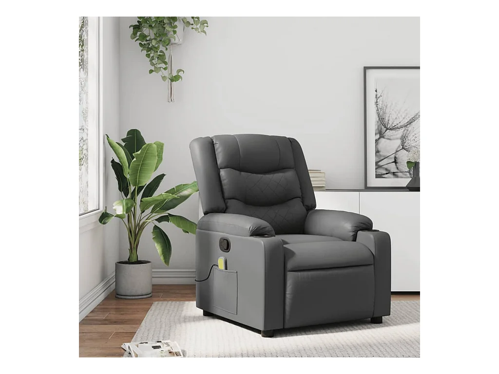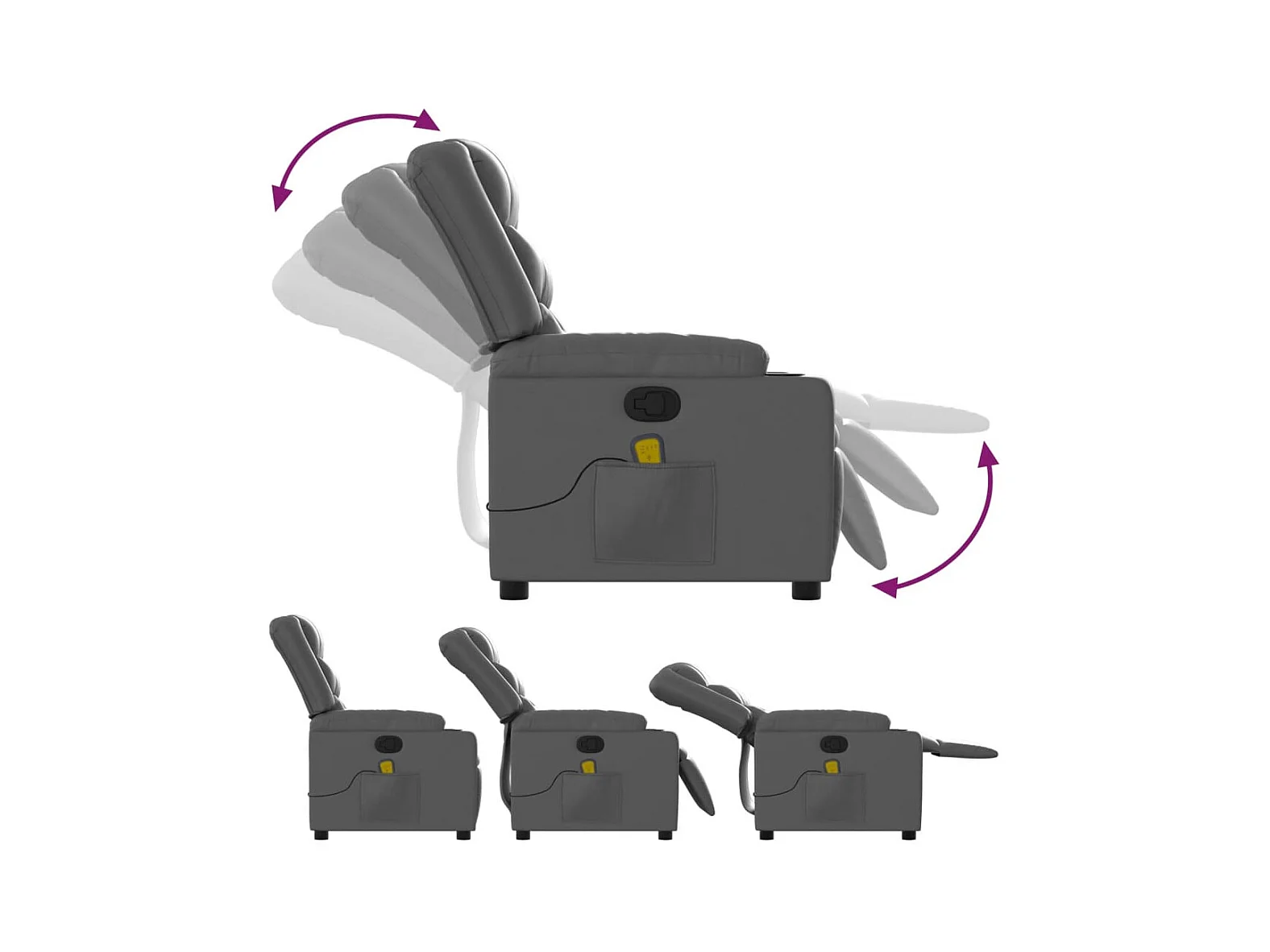 Fauteuil inclinable massant avec repose-pied gris similicuir