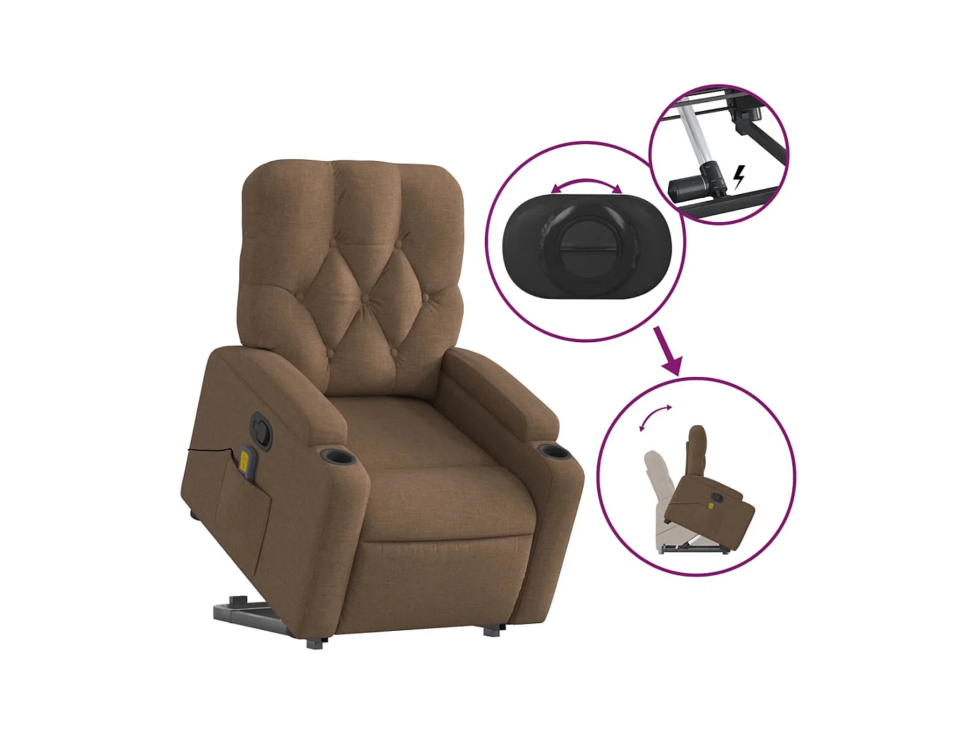 Fauteuil massant inclinable électrique Marron foncé Tissu