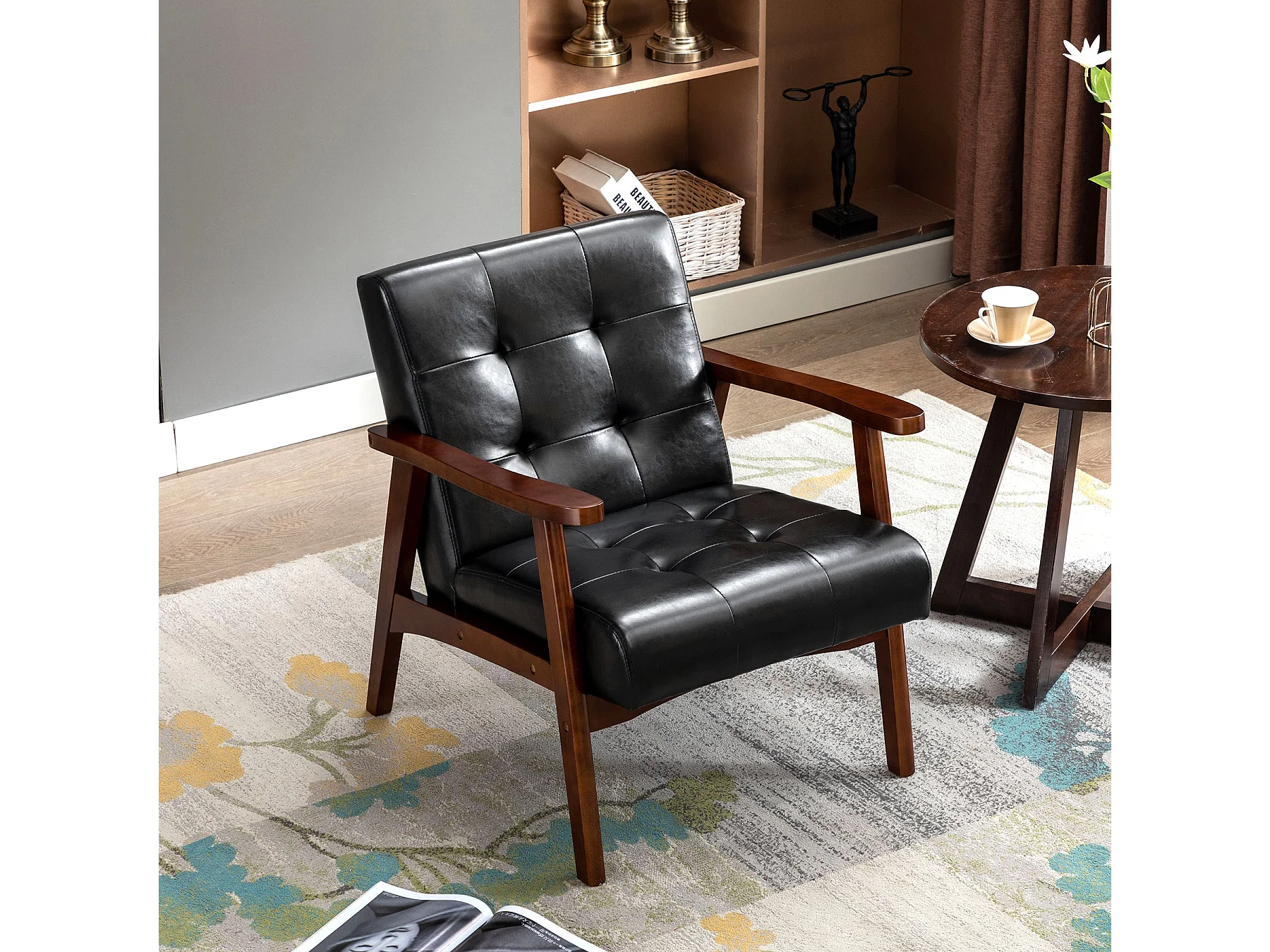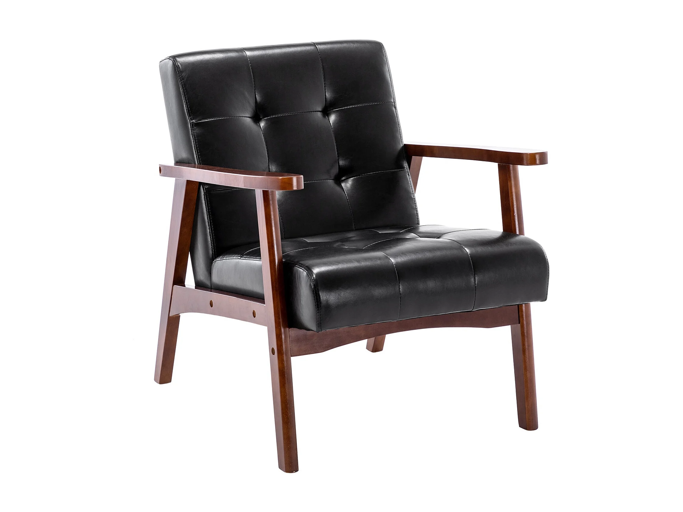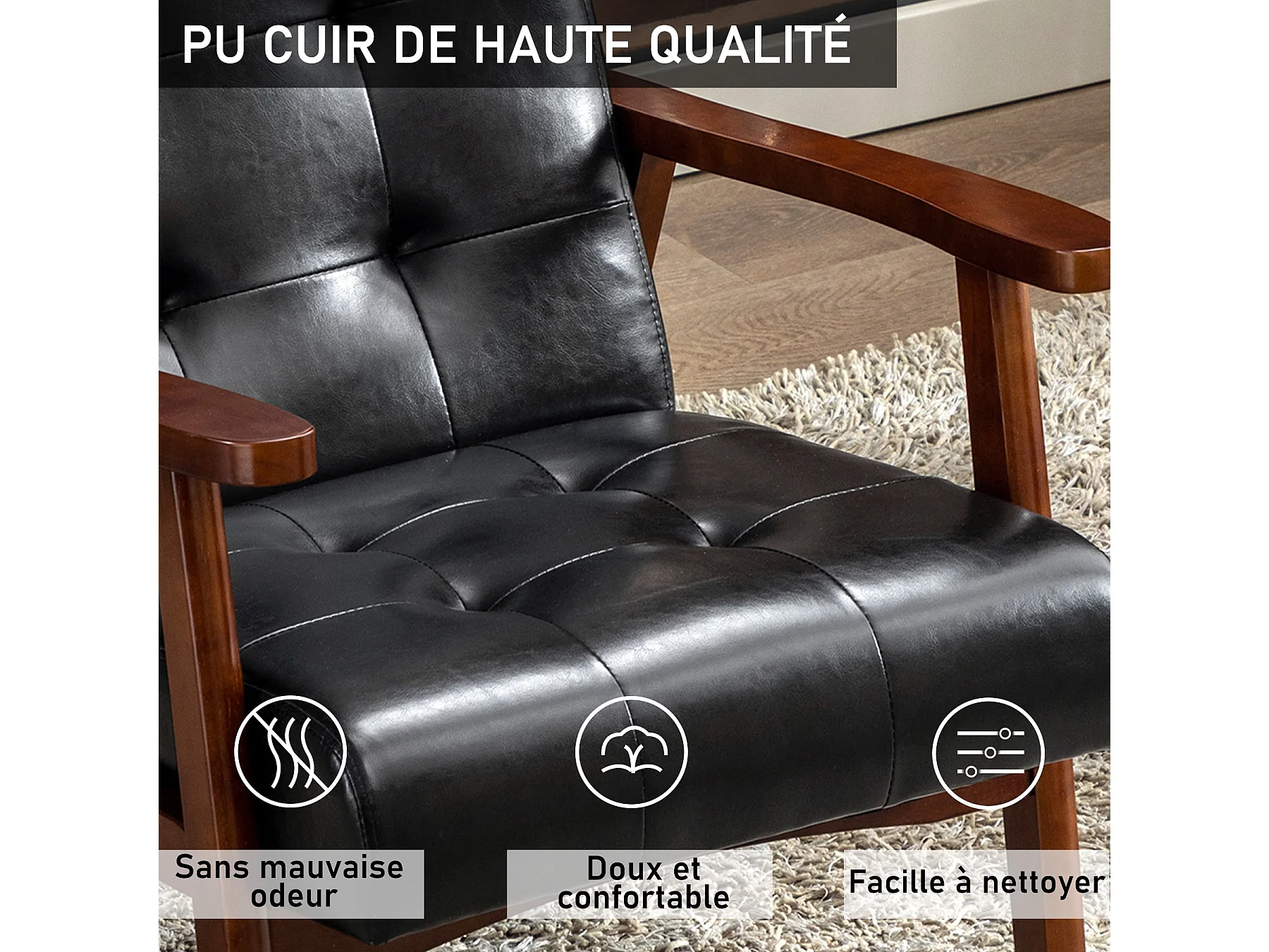 Fauteuil Médiéval Chaise Vintage en Similicuir Tufté avec Accoudoirs en Bois, Style Vintage, Tapissé en Bois Dur, Noir