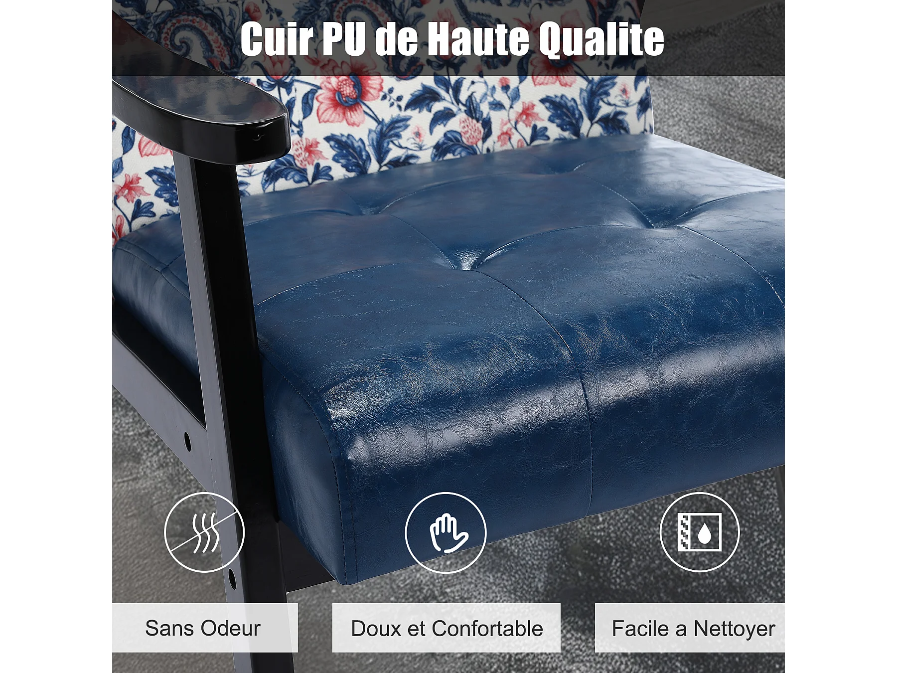 Fauteuil médiéval en bois bleu à motifs imprimés – L 67 x L 76 x H 76 cm