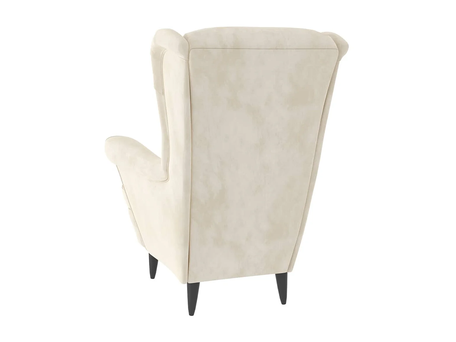 Fauteuil tissu crème effet laine et bois de hévéa Ritaz