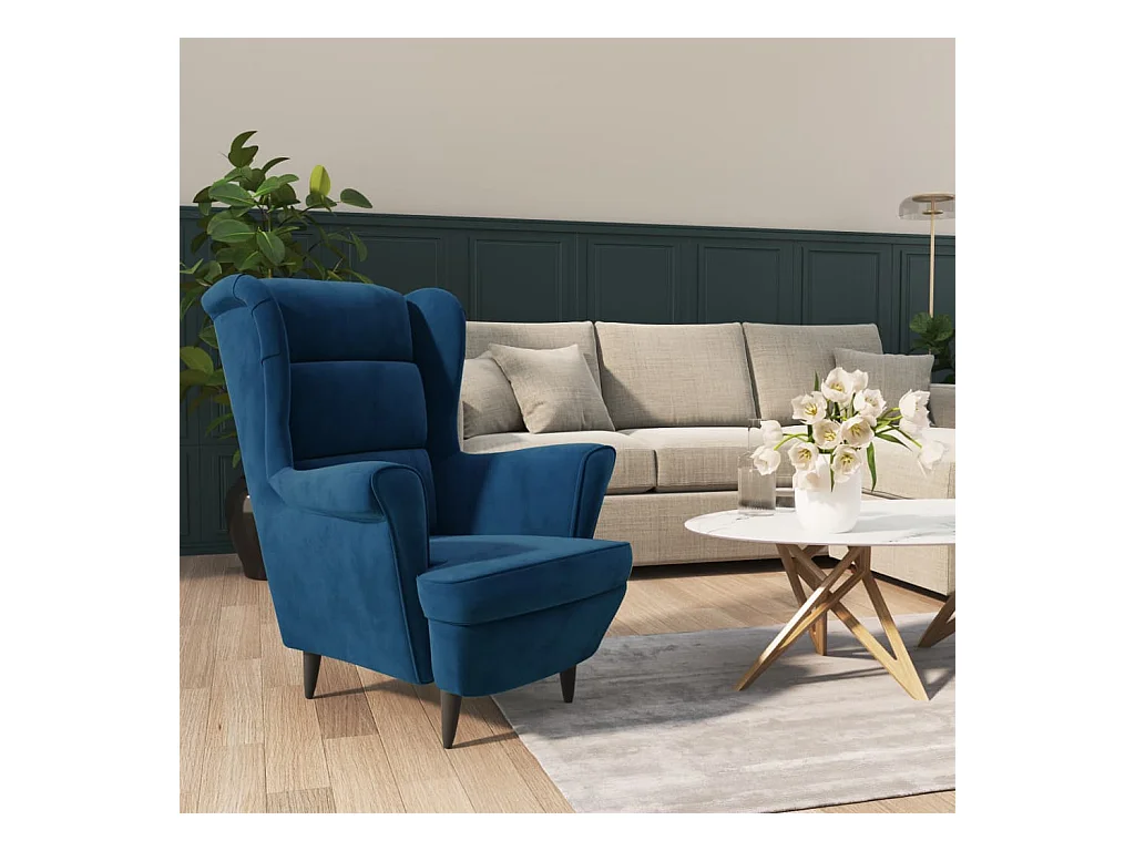 Fauteuil droit bleu velours SEF62369