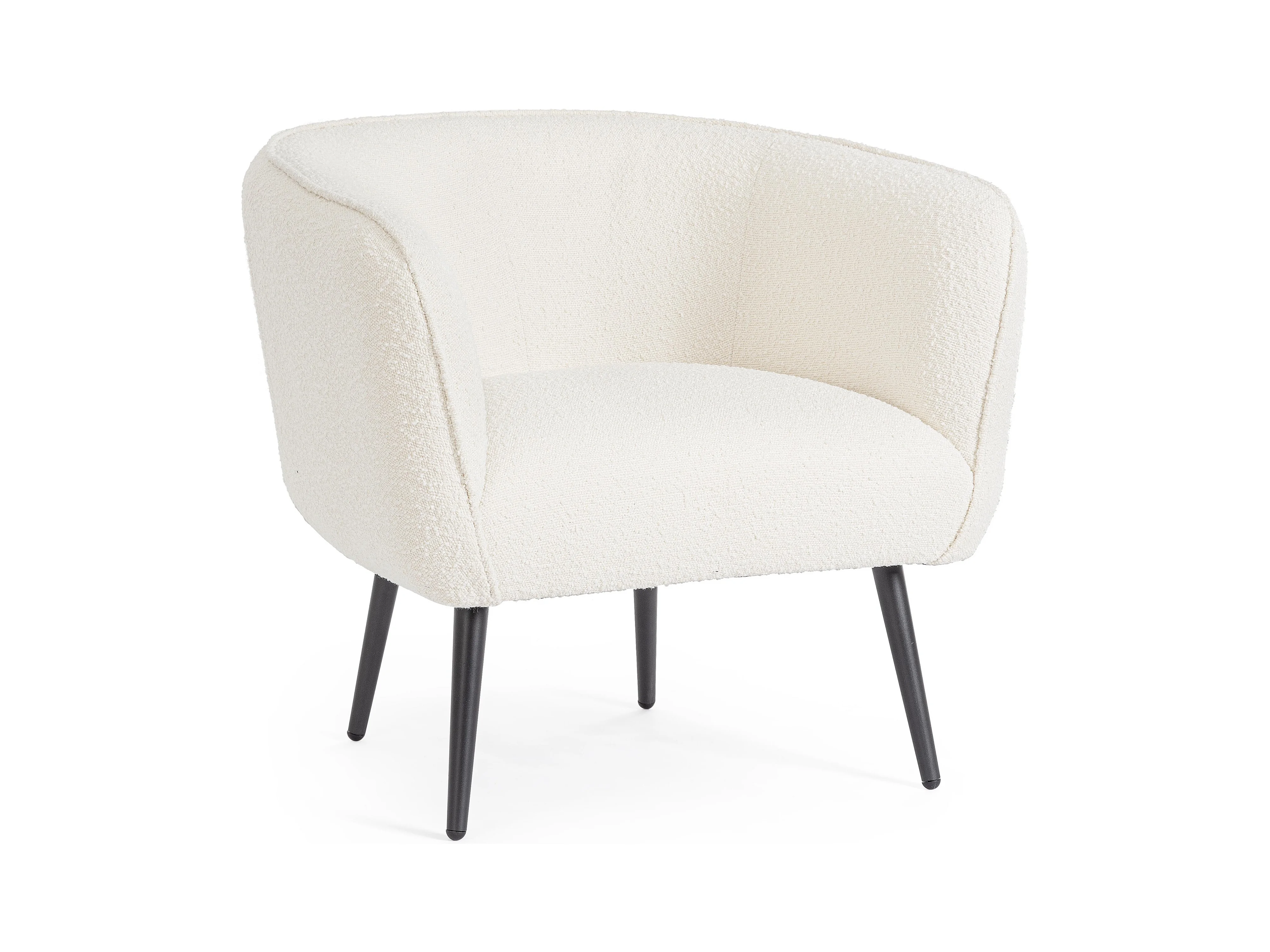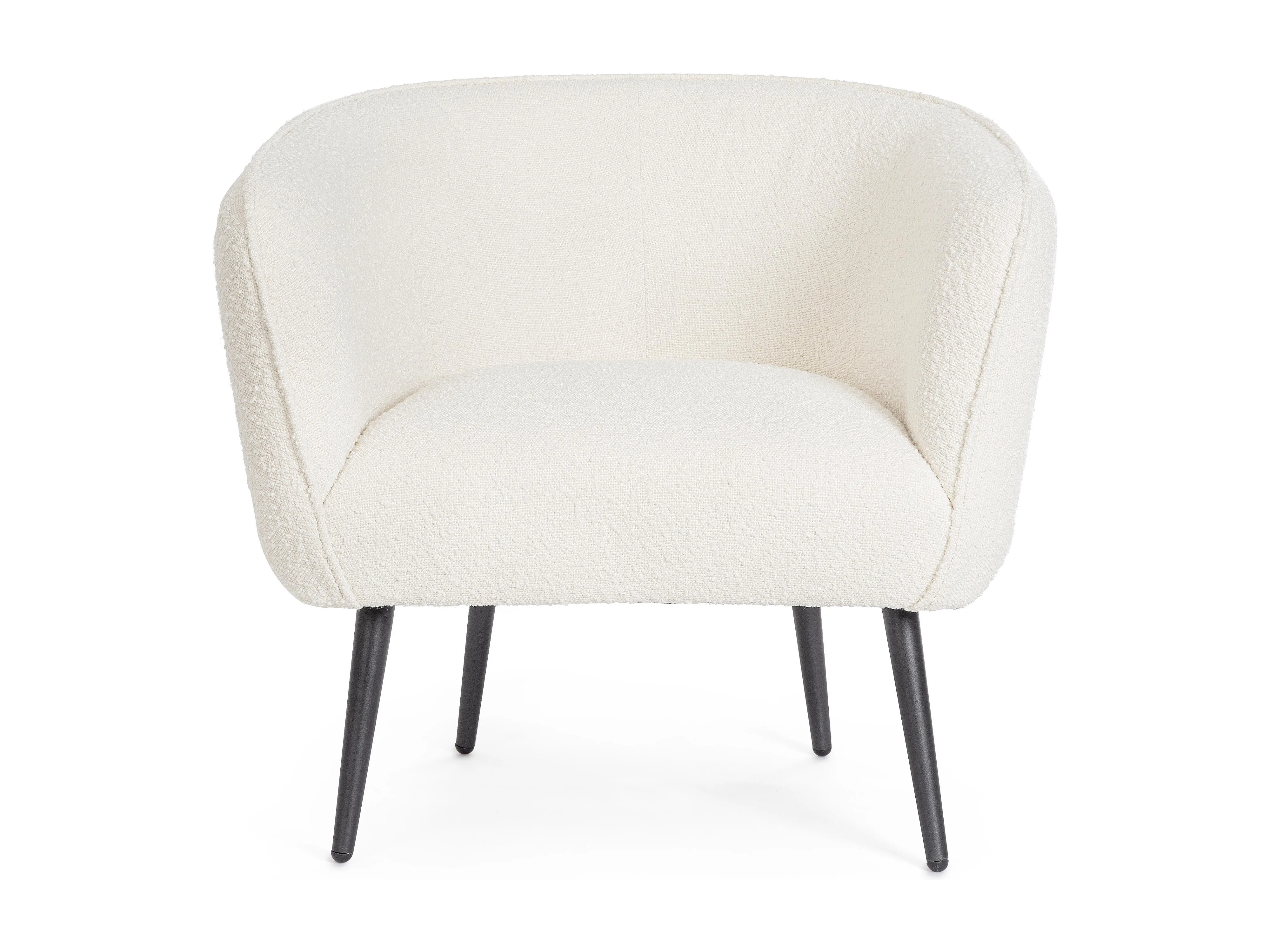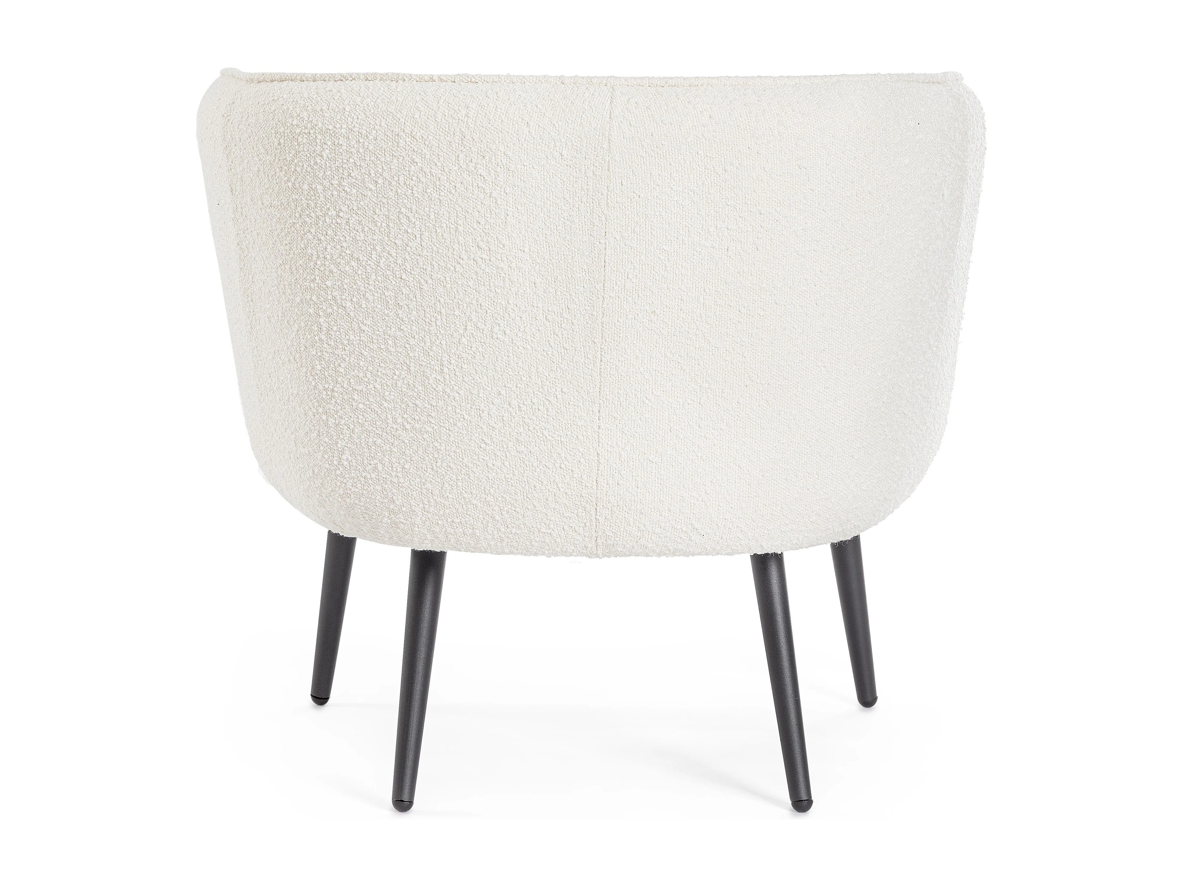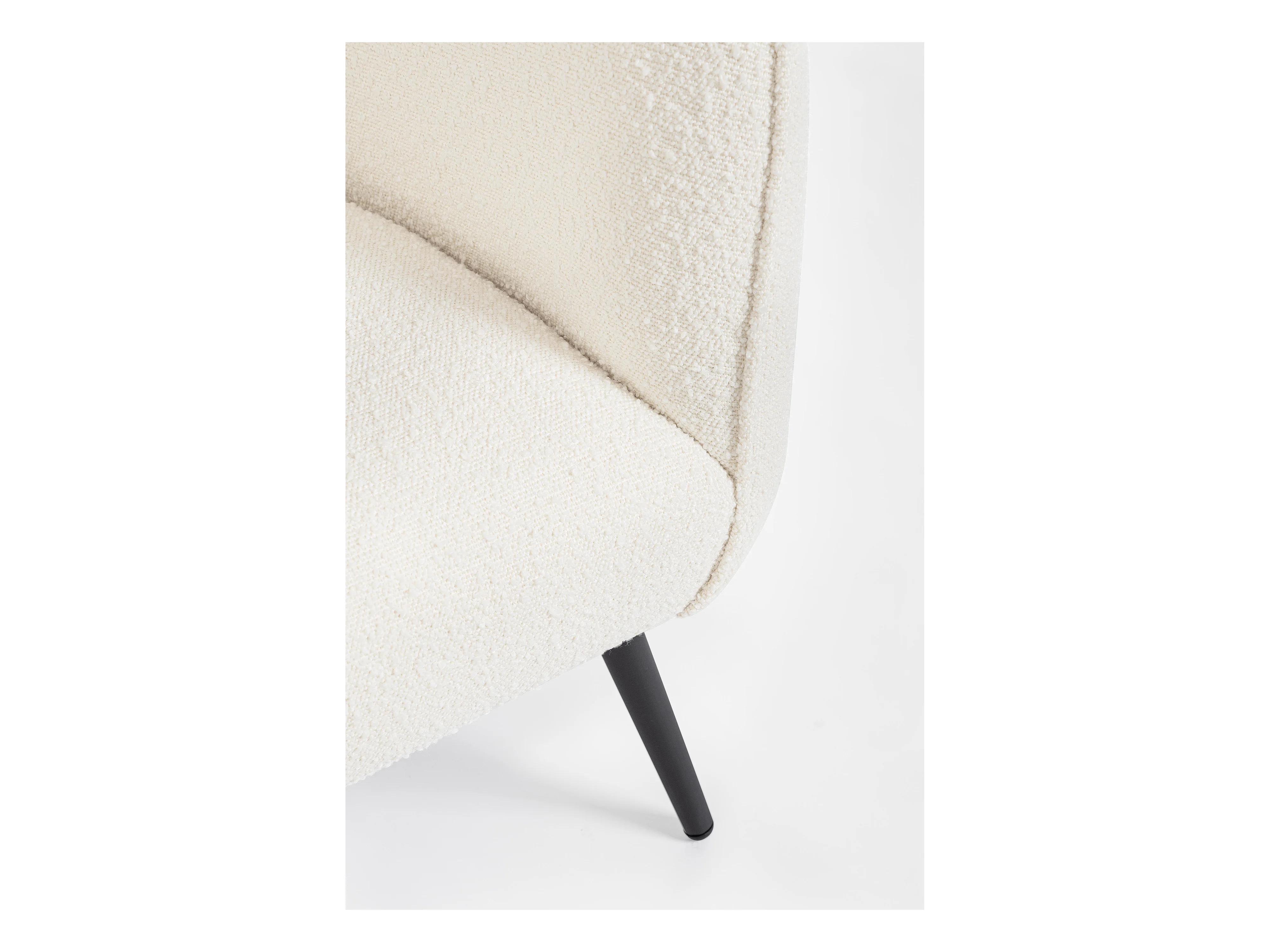 Fauteuil moderne tissu doux bouclé blanc et pieds acier noir Kadole 76cm