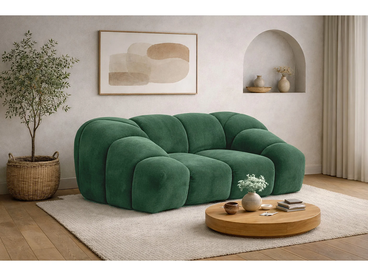 Fauteuil modulaire, tissu velours Bluvel, vert, CROISSANT
