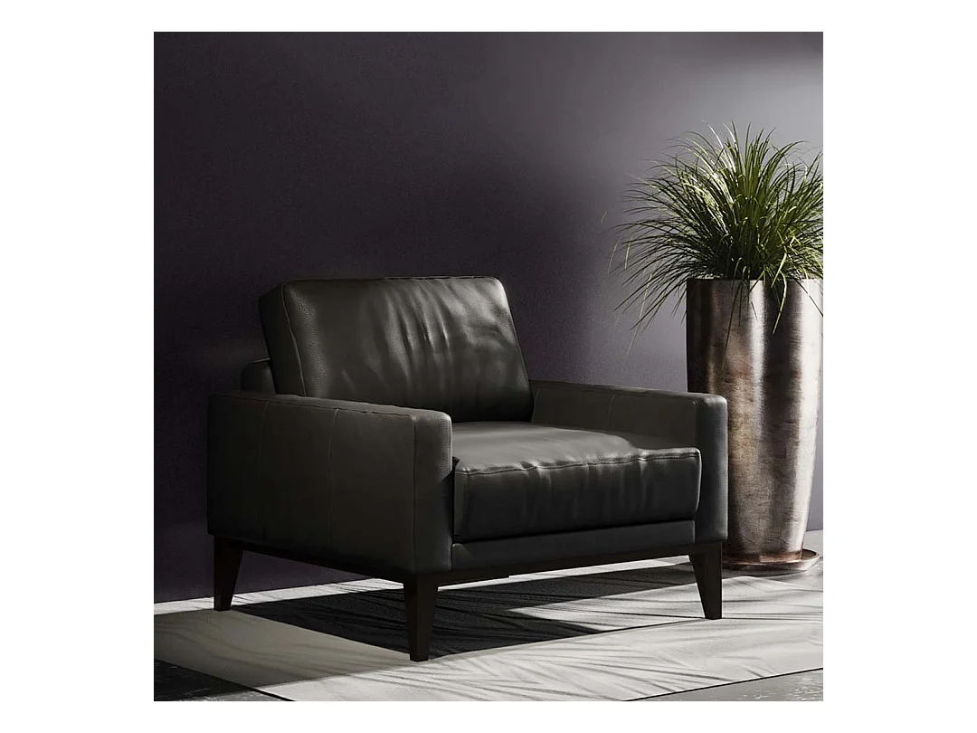 Fauteuil à oreilles Noir et gris Cuir véritable