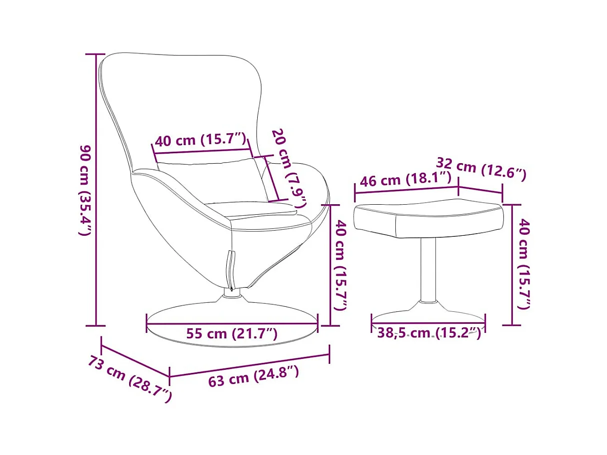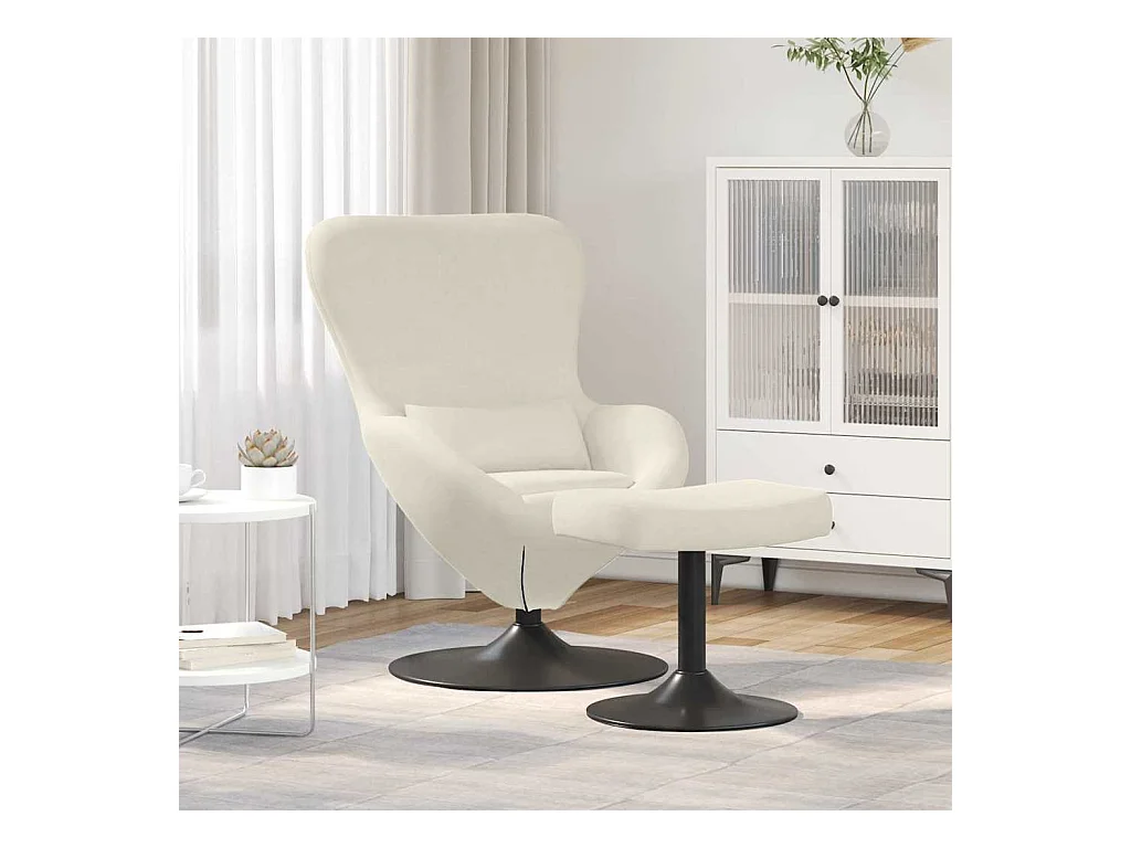 Chaise Œuf avec Pouf Crème 63 x 73 x 90 cm Velours