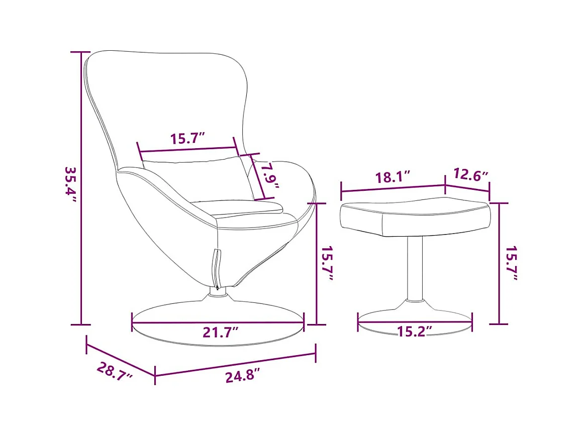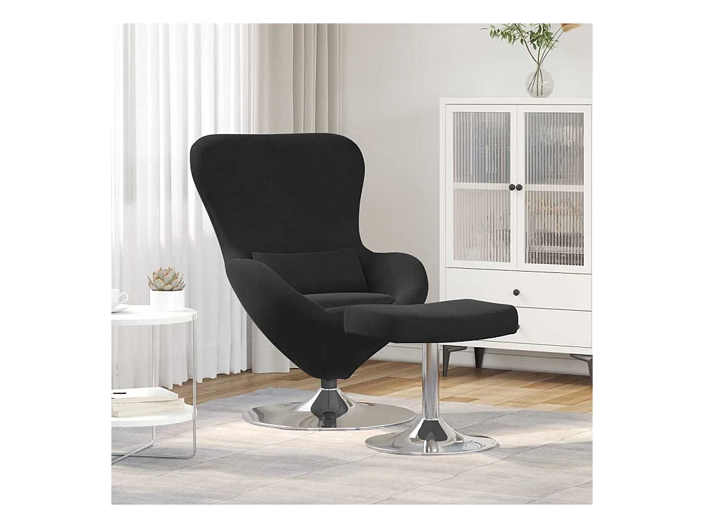 Chaise Œuf avec Pouf Noir 63 x 73 x 90 cm Velours