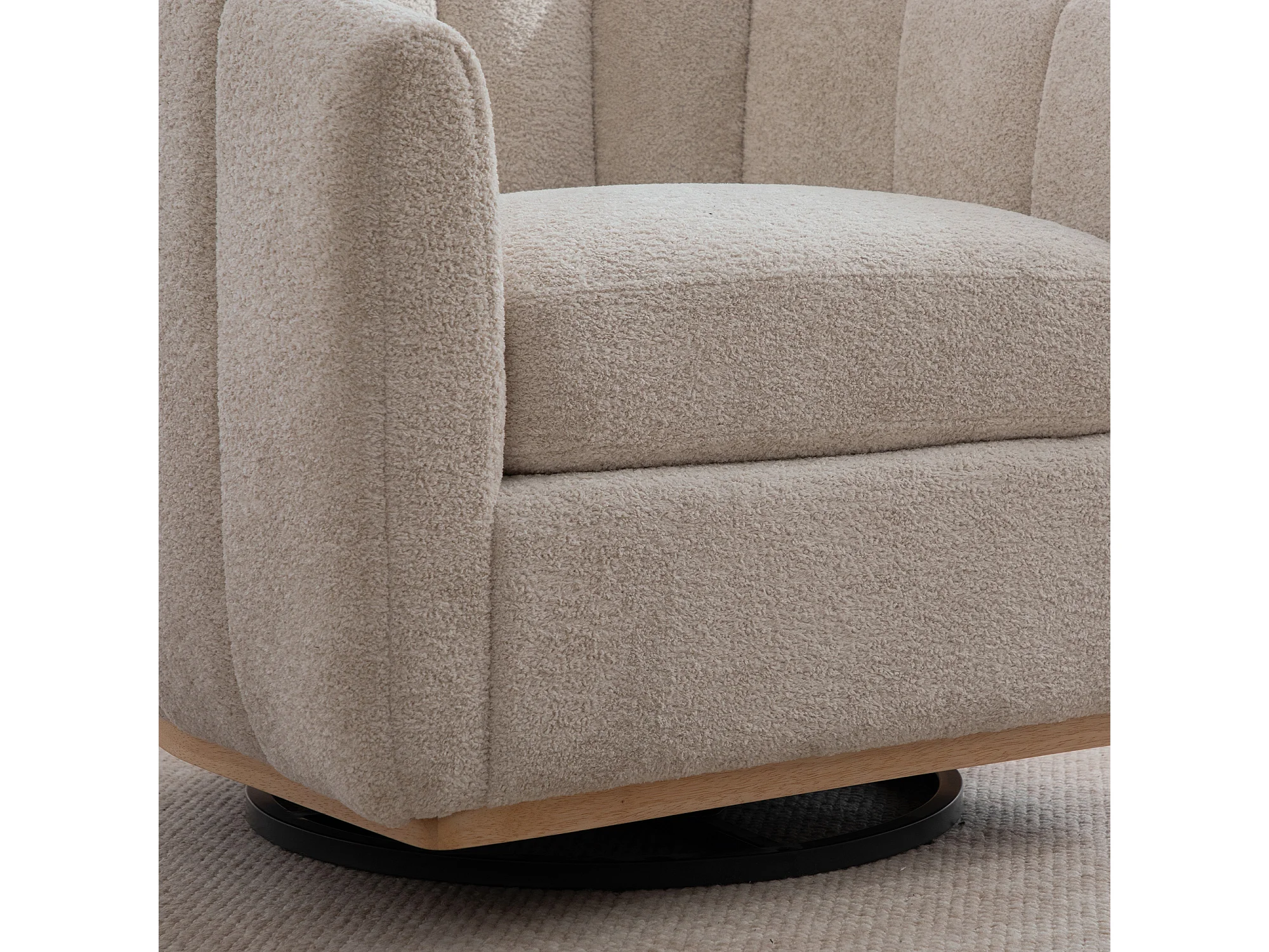 Fauteuil pivotant 360° en chenille beige avec base en métal - Forme de citrouille