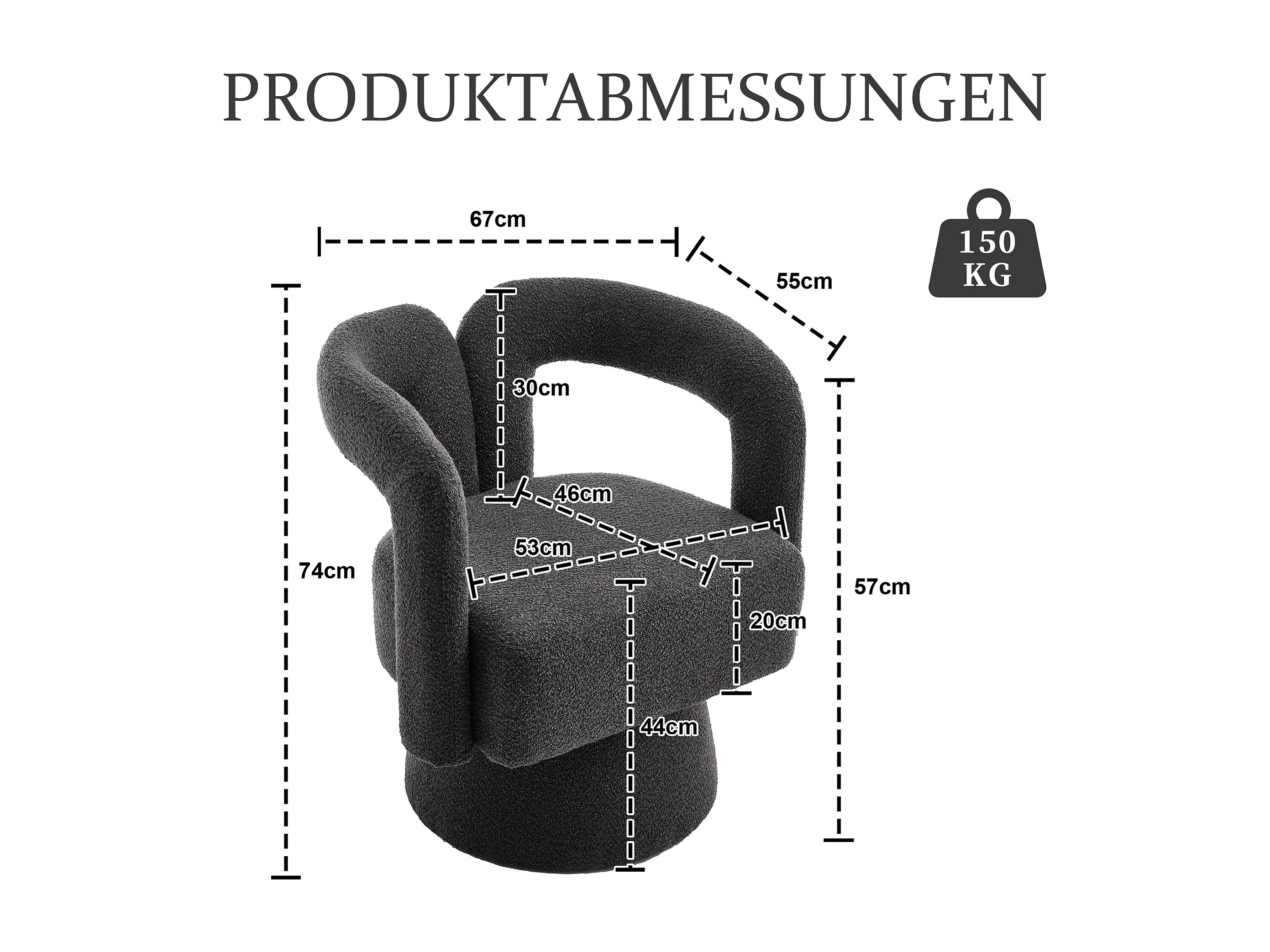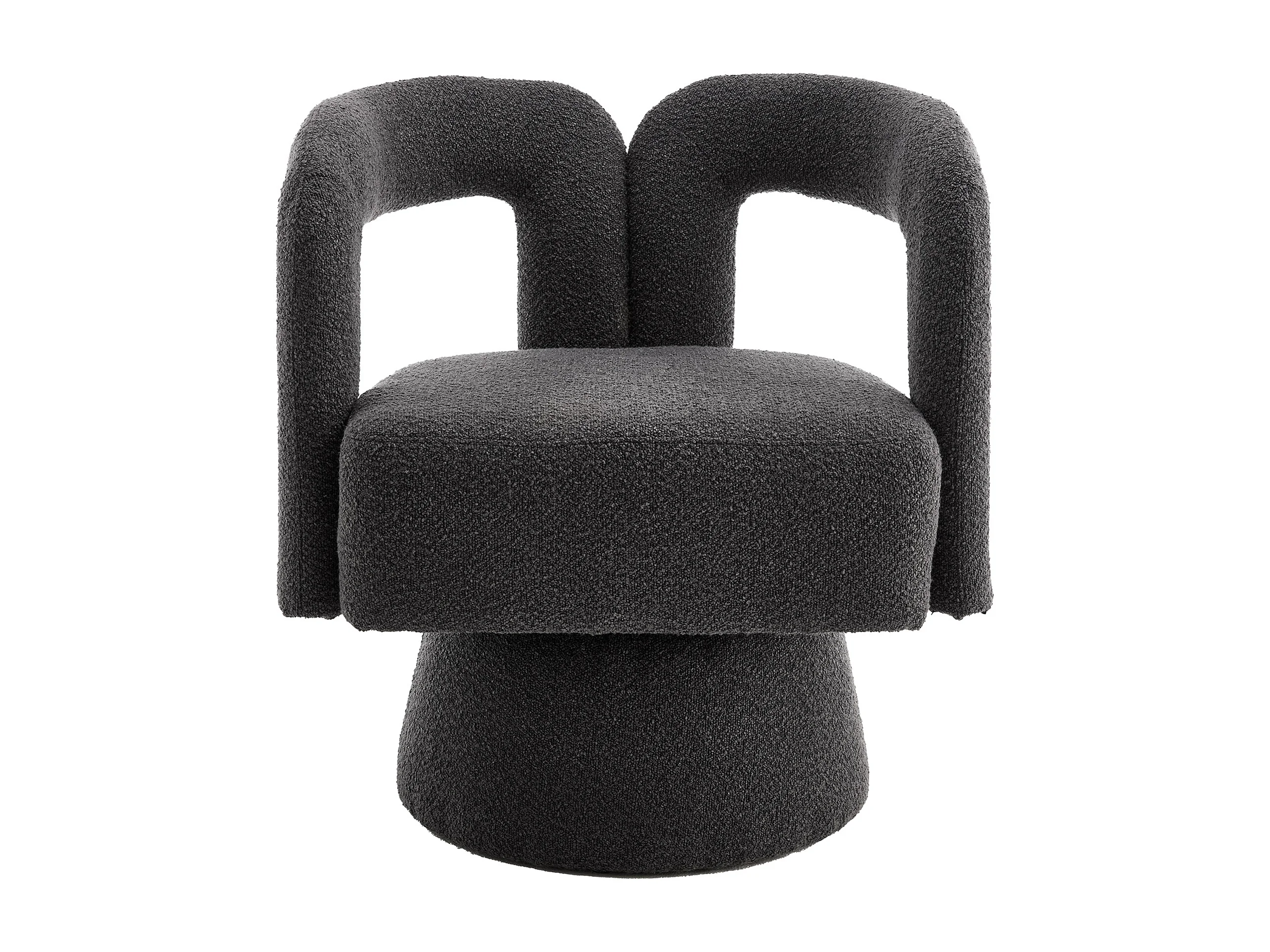 Fauteuil pivotant 360° en tissu bouclé, design moderne avec large assise rembourrée, gris anthracite (67x55x74cm)