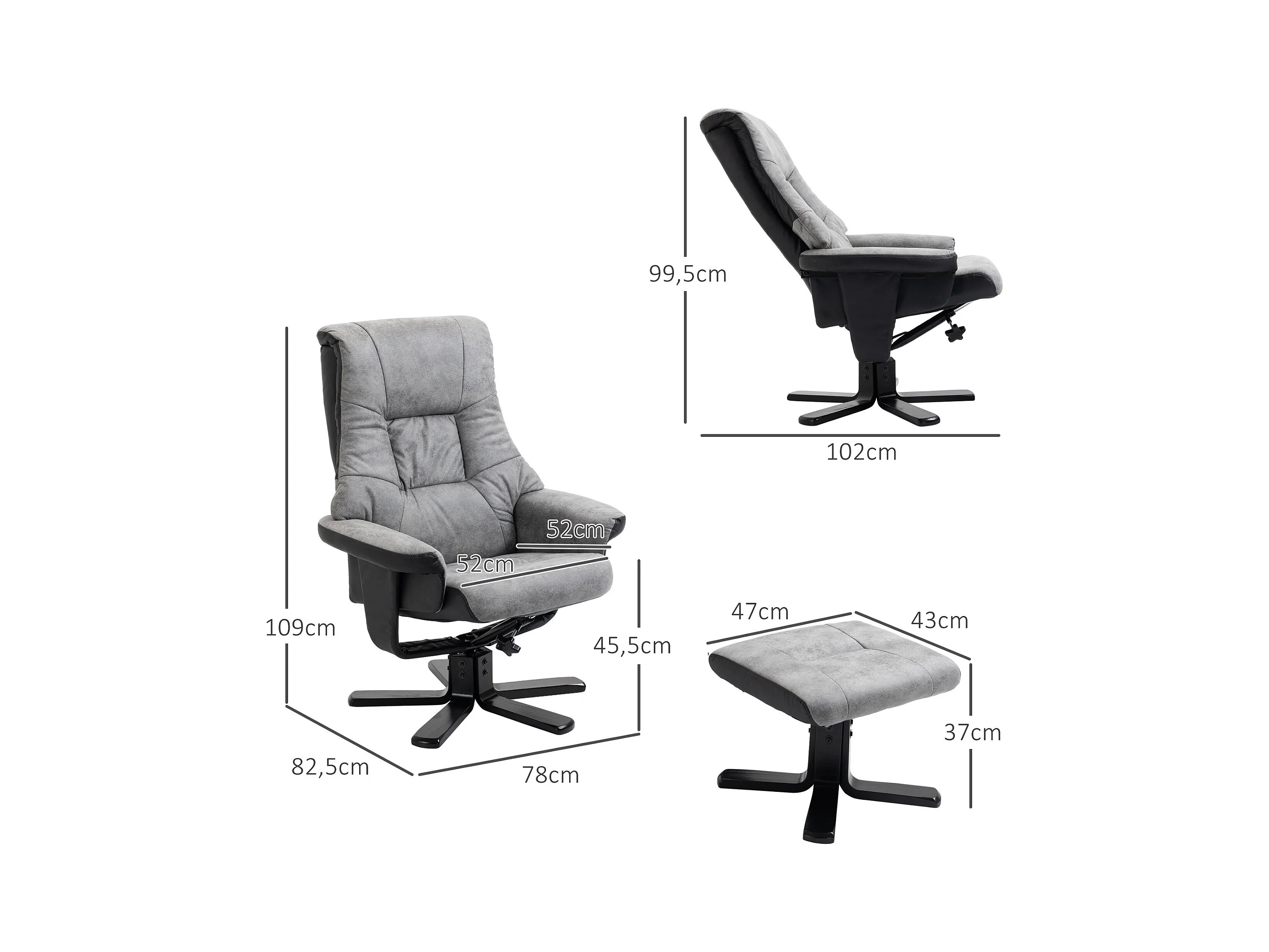 Fauteuil pivotant avec repose-pieds, fonction inclinable, microfibre grise (78x82.5x109 cm)