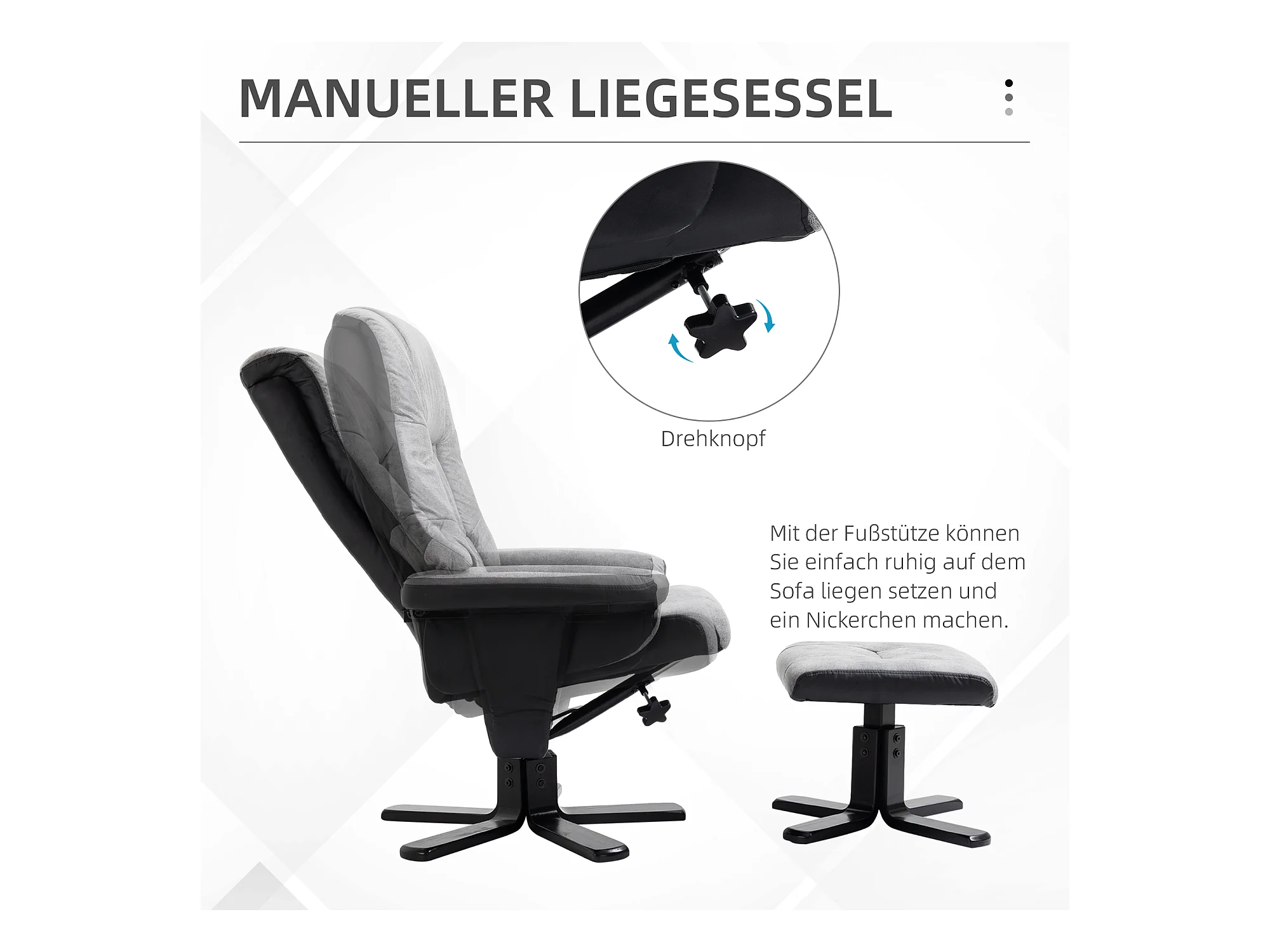 Fauteuil avec repose-pieds, fonction inclinable à 130°, tissu en velours, jusqu'à 150 kg, gris foncé (78x85x106 cm)