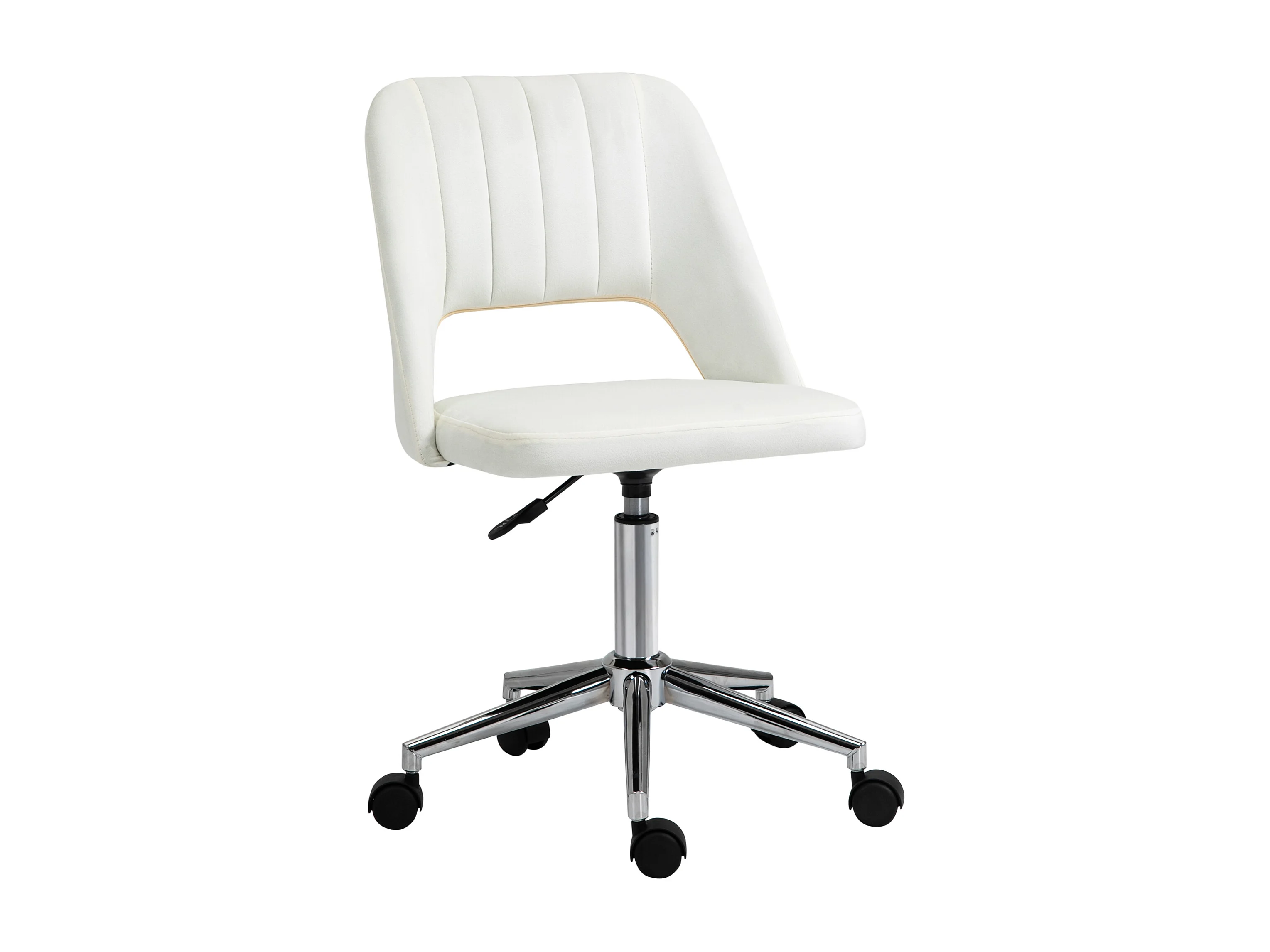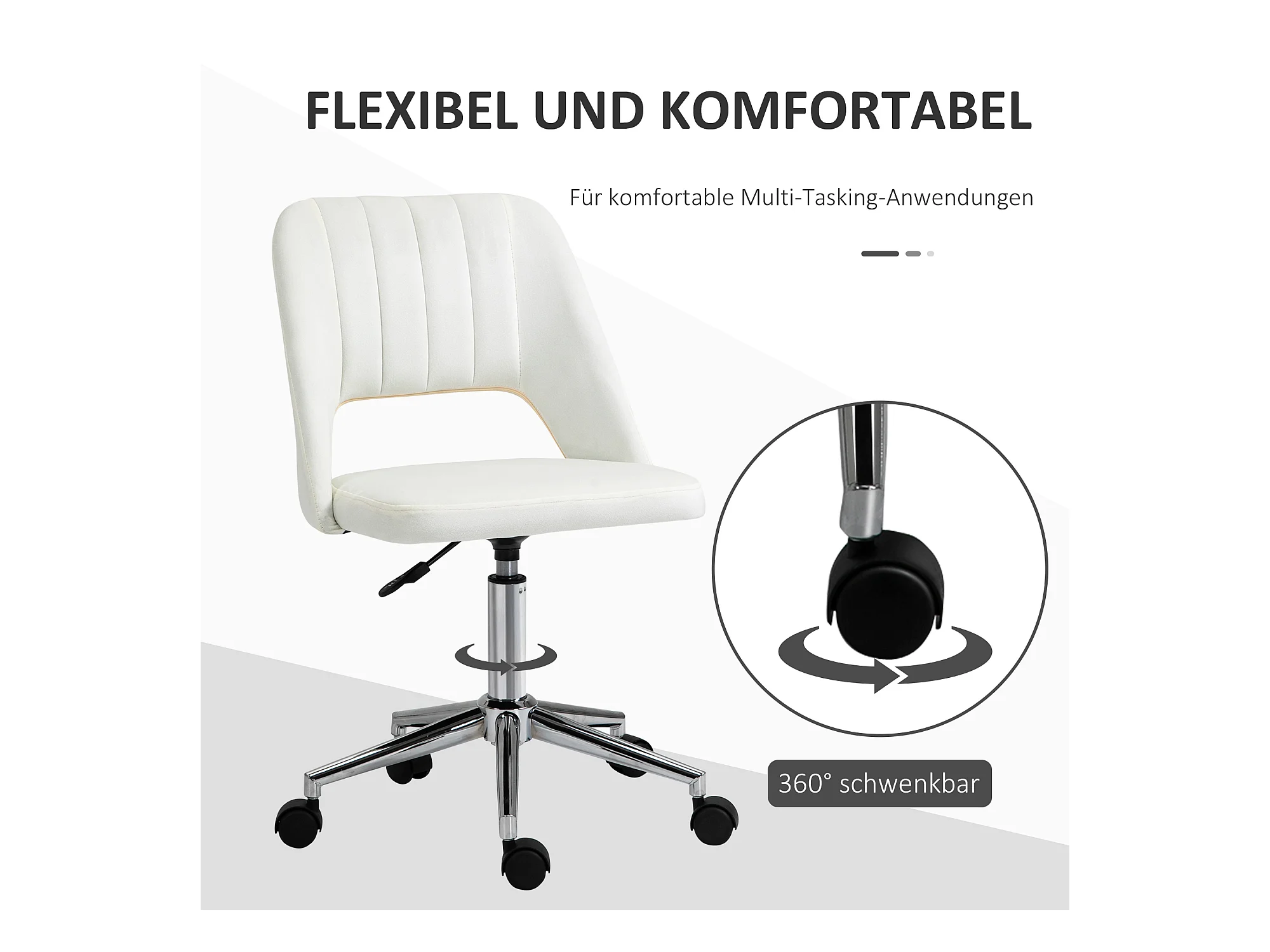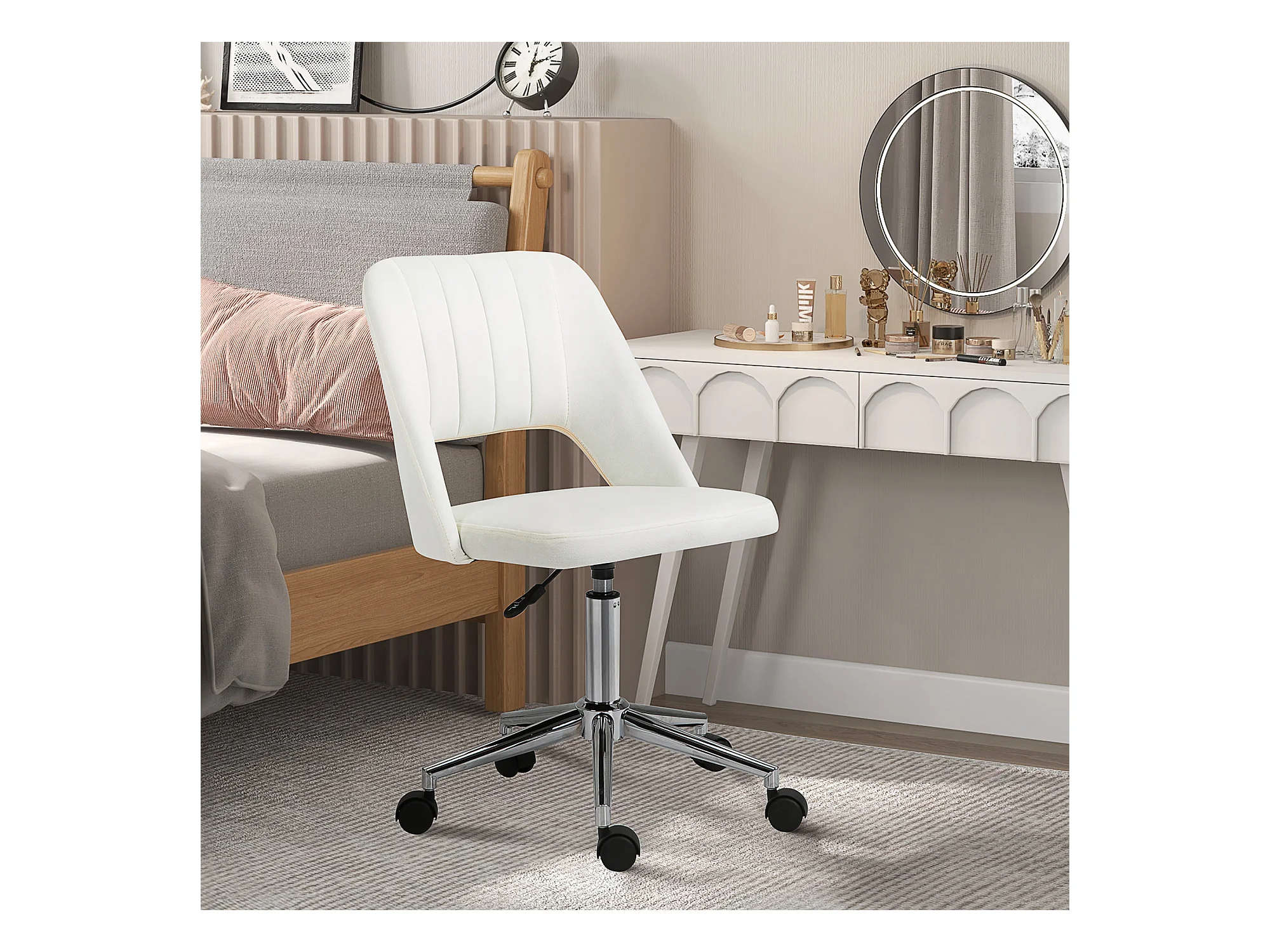 Chaise de bureau sans accoudoirs en simili cuir, siège avec roulettes et coussin supplémentaire, réglable en hauteur, couleur beige, pratique et confortable